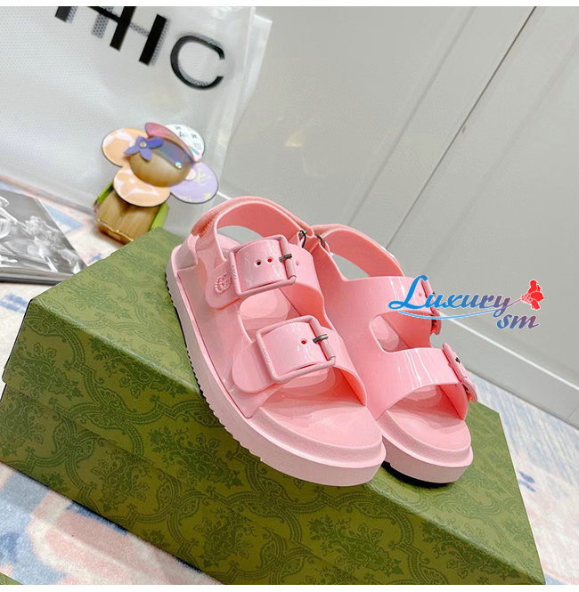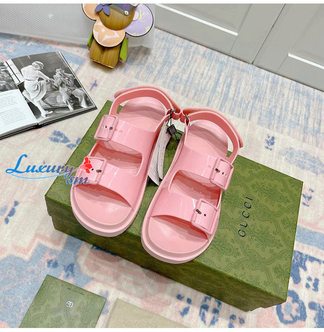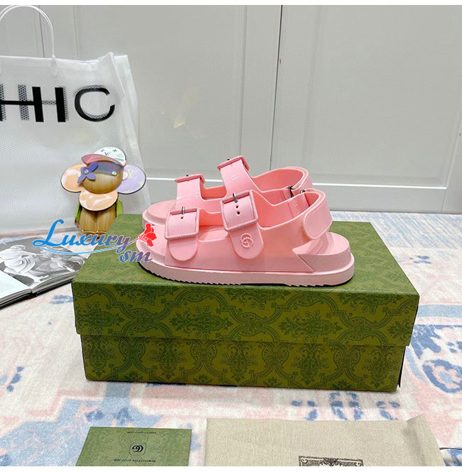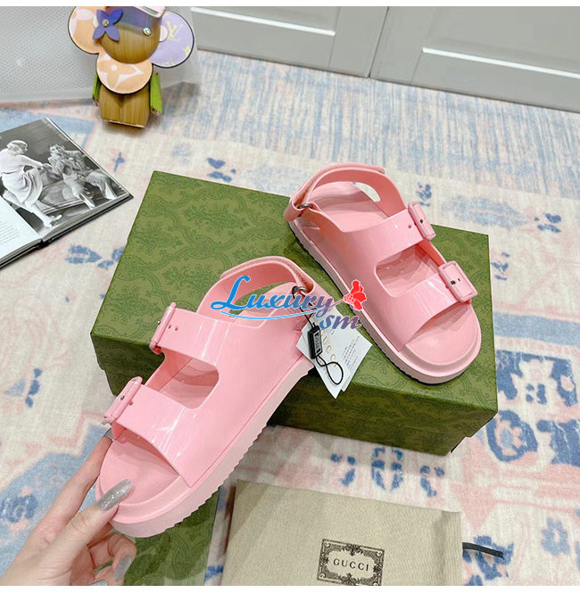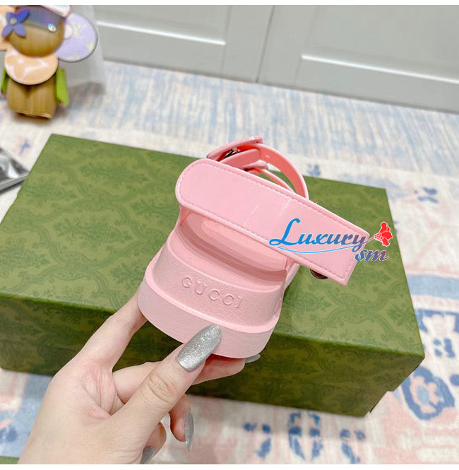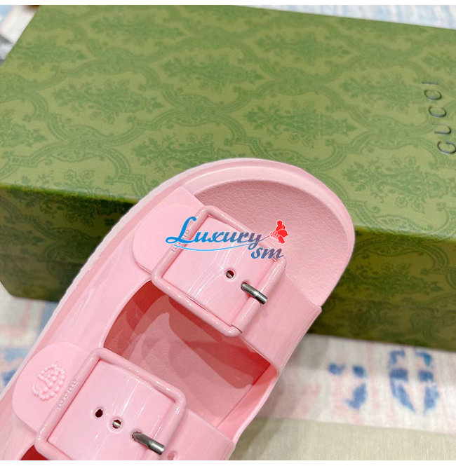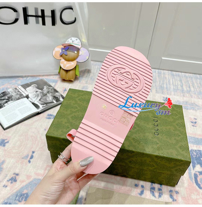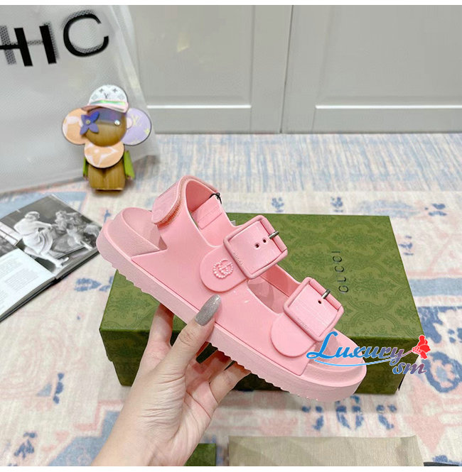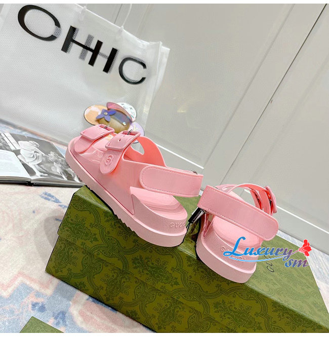 GUCCI-660243 5815 구찌 핑크 러버 미니 더블 G 샌들