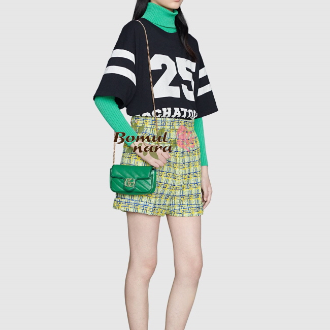 그린 색조의 마틀라세가죽으로 선보이는GG 마몽