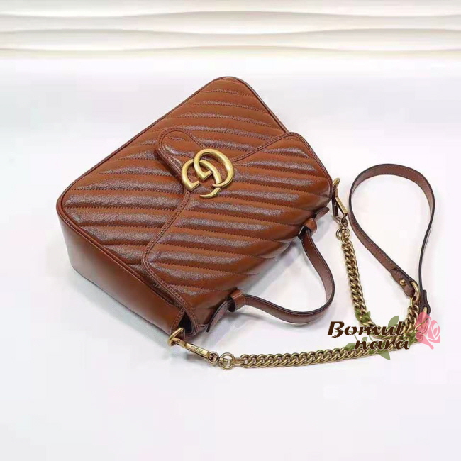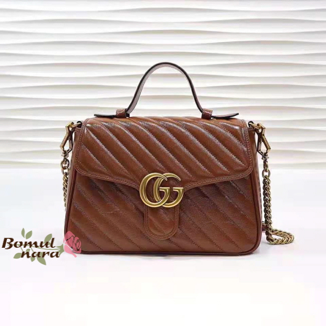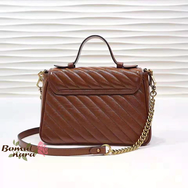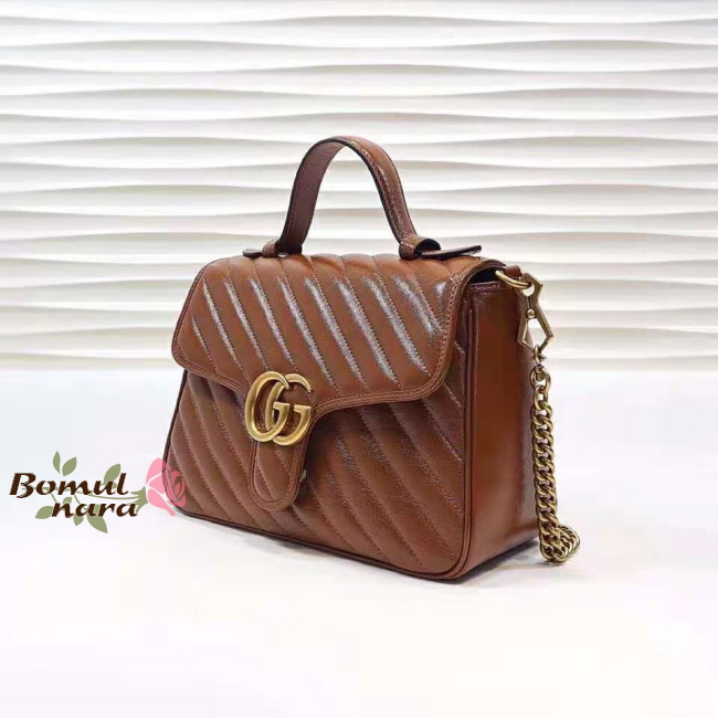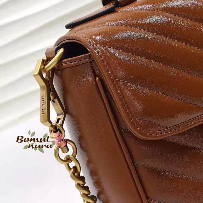 [스페셜오더]GUCCI-498110 2266 구찌 GG 마몽 코냑 사선형 마틀라세 가죽 스몰 탑 핸들백
