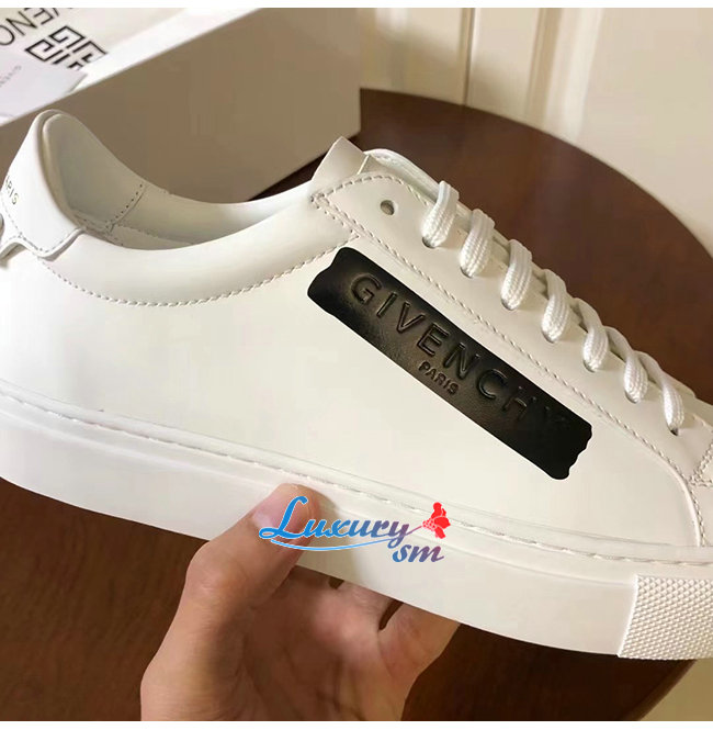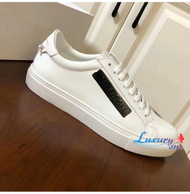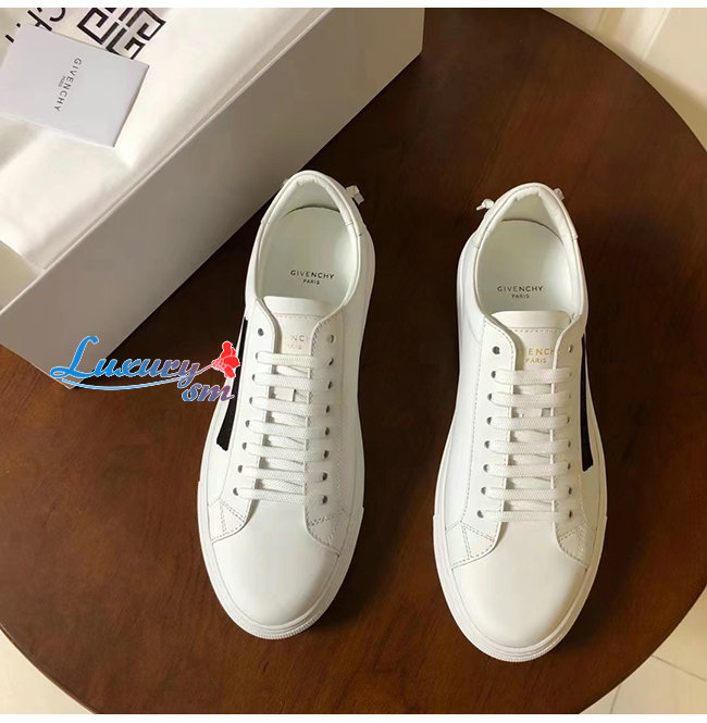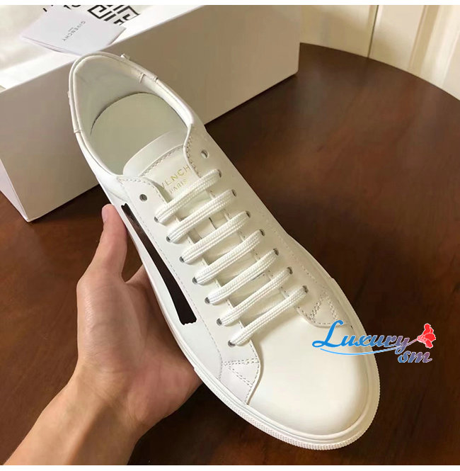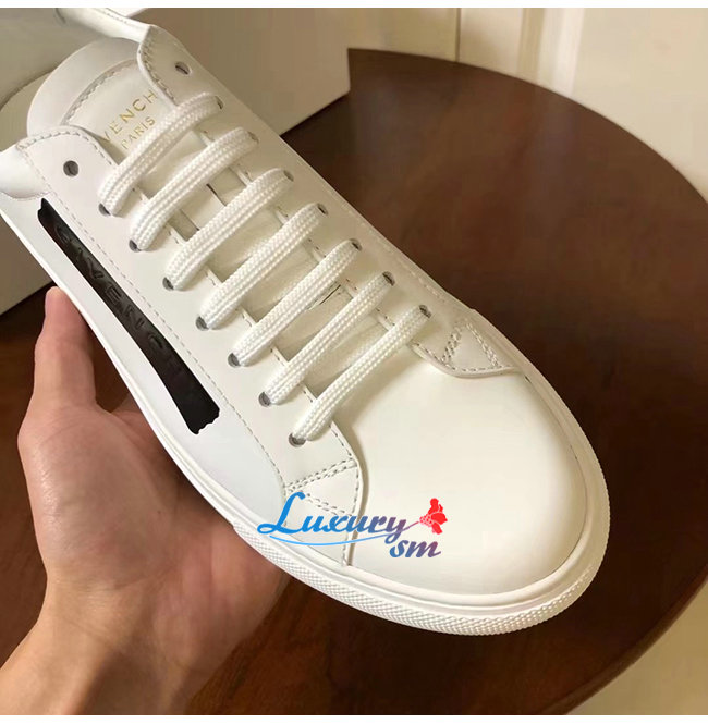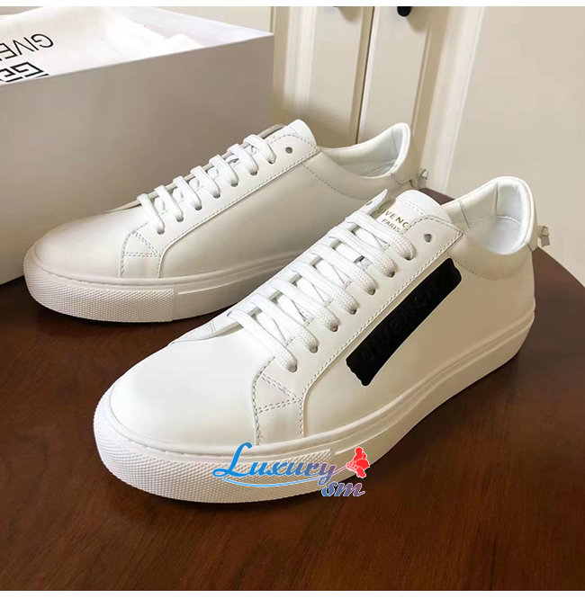 GIVENCHY-BH0002 지방시 화이트 송아지 가죽 라텍스 밴드 장식 스니커즈 남성용