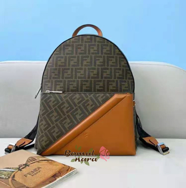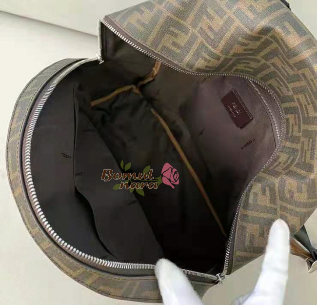[스페셜오더]FENDI-7VZ042 펜디 브라운 FF 페브릭 Fendi Mania 레터링 장식 백팩 가격 : 400,000원