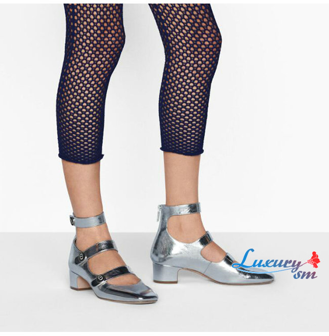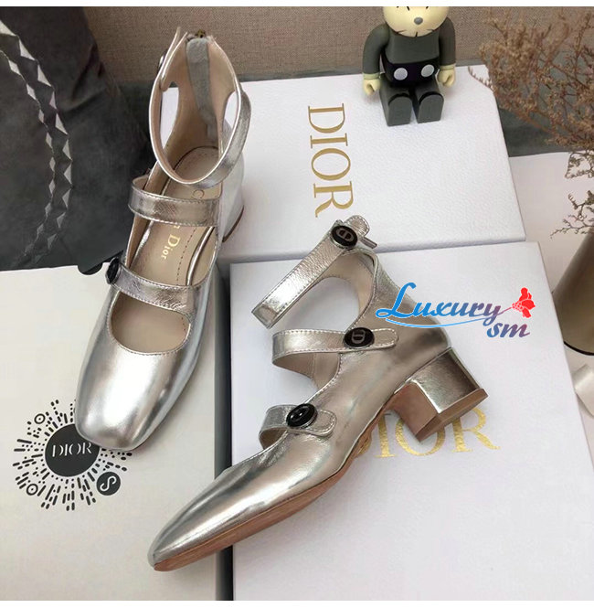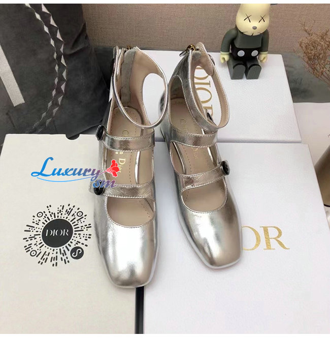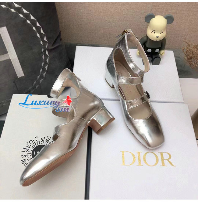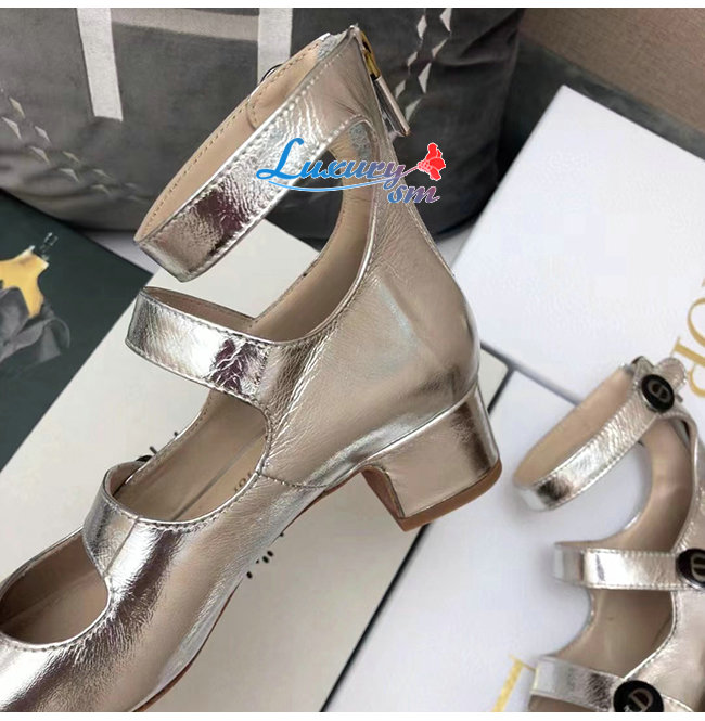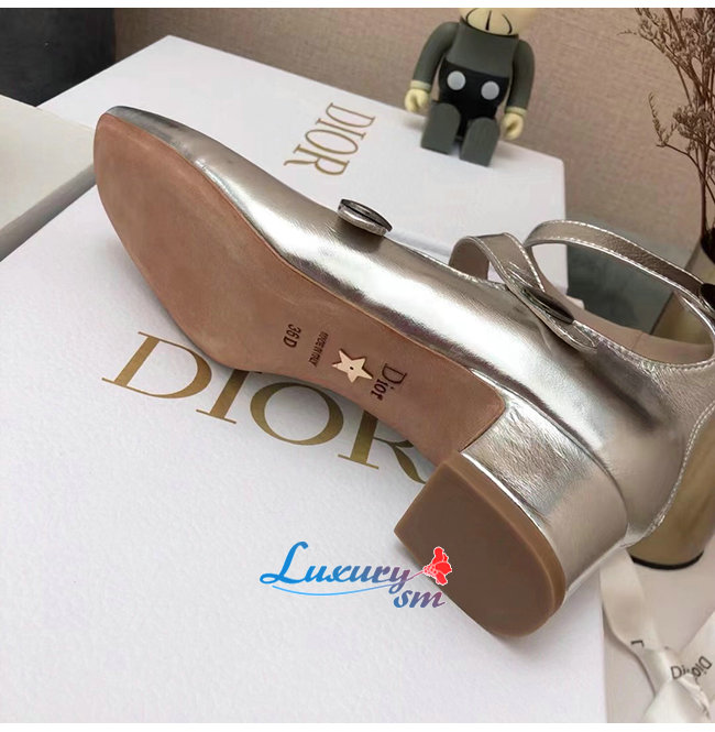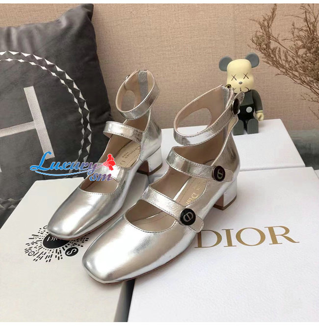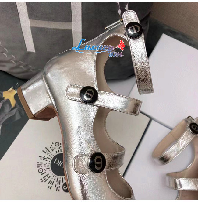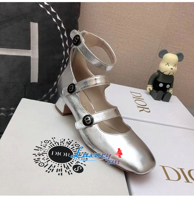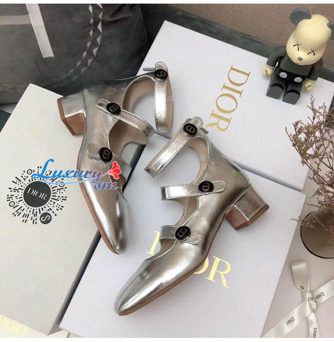 DIOR-KDP912 디올 실버 래미네이트 송아지 가죽 D-DOLL 펌프스