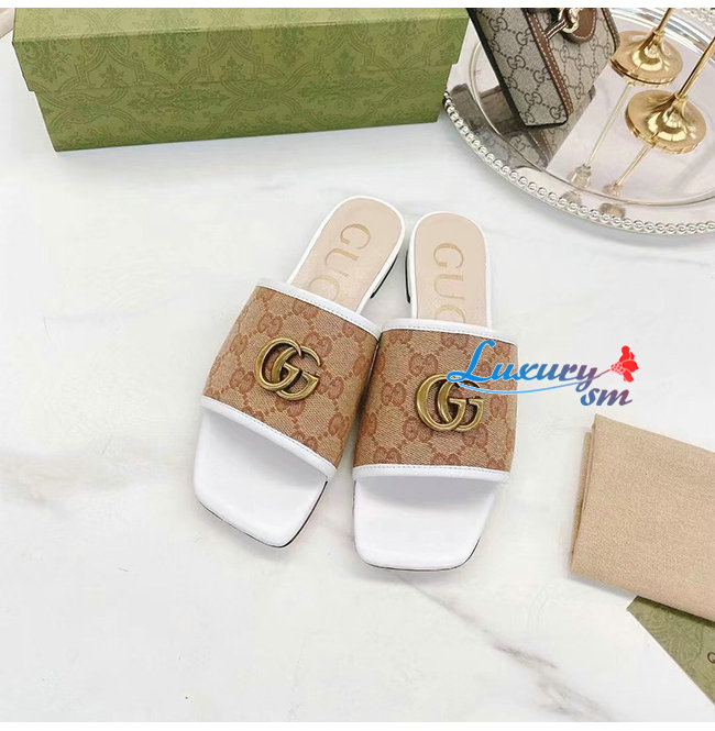 GUCCI-619893 9795 구찌 화이트 더블 G 슬라이드 샌들