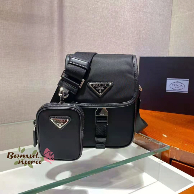 [스페셜오더]PRADA-2VD043 프라다 블랙 리나일론&사피아노 플랩 숄더 백