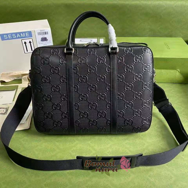 [스페셜오더]GUCCI-658573 1000 구찌 블랙 GG 엠보스 서류 가방