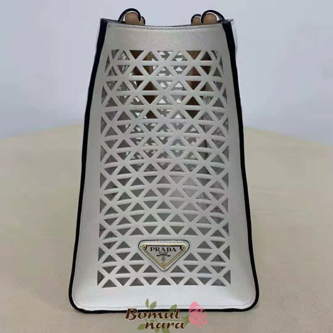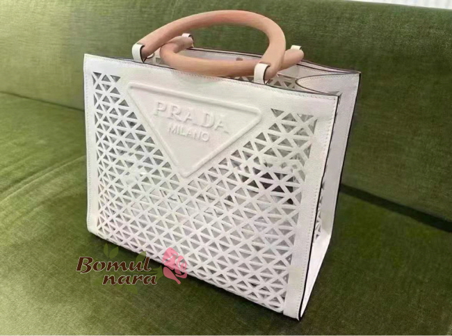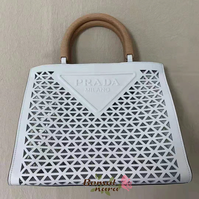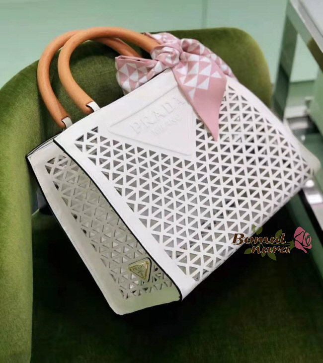 [스페셜오더]PRADA-1BG405 프라다 화이트 트라이앵글 로고 아일릿 탑 핸들 백