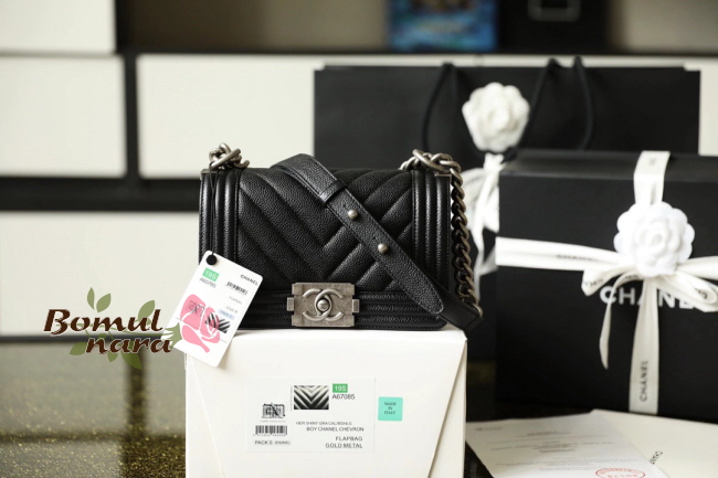 [스페셜오더]CHANEL-A67085 샤넬 블랙 캐비어 루테늄 메탈 스몰 보이 플랩 백 가격 : 600,000원