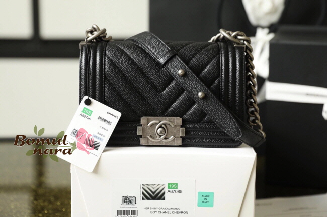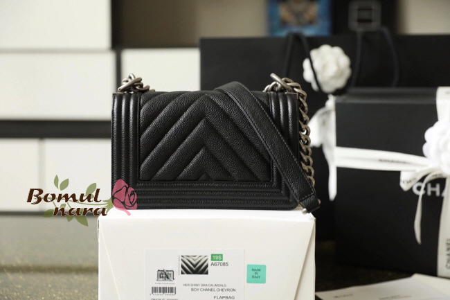 [스페셜오더]CHANEL-A67085 샤넬 블랙 캐비어 실버 쉐브론 보이 스몰 플랩 백