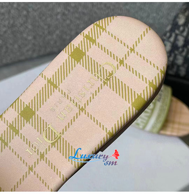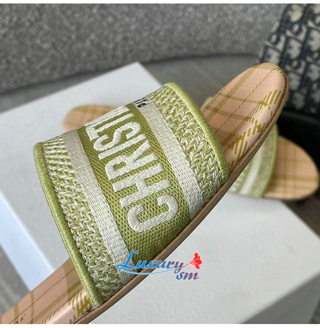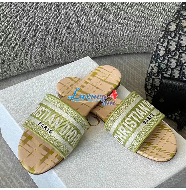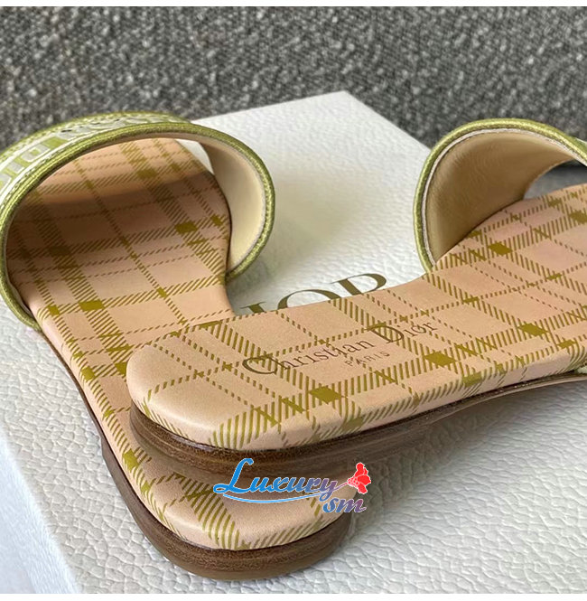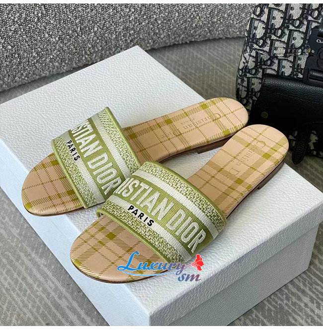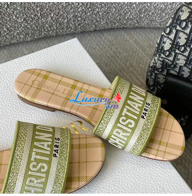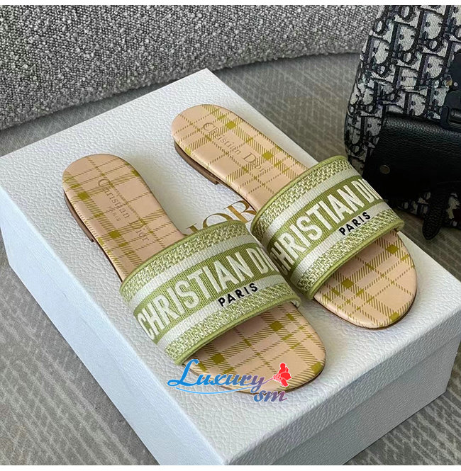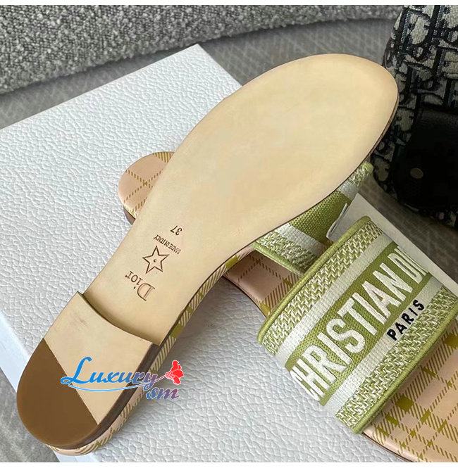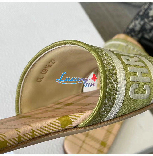 DIOR-KCQ209 디올 라임 Check n Dior 자수 코튼 DWAY 뮬 여성용