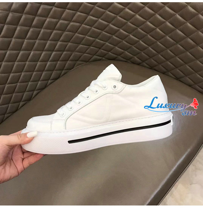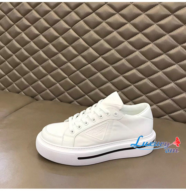 PRADA-1E661M 프라다 블화이트 매크로 리나일론 브러시드 가죽 스니커즈