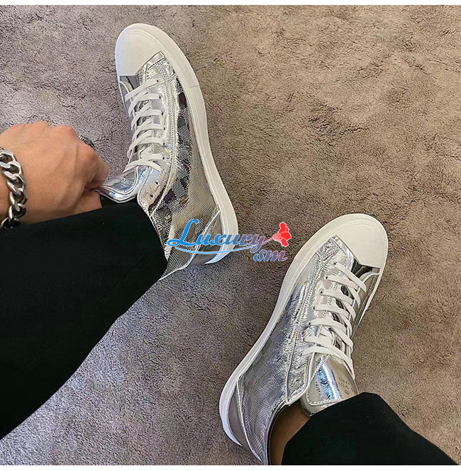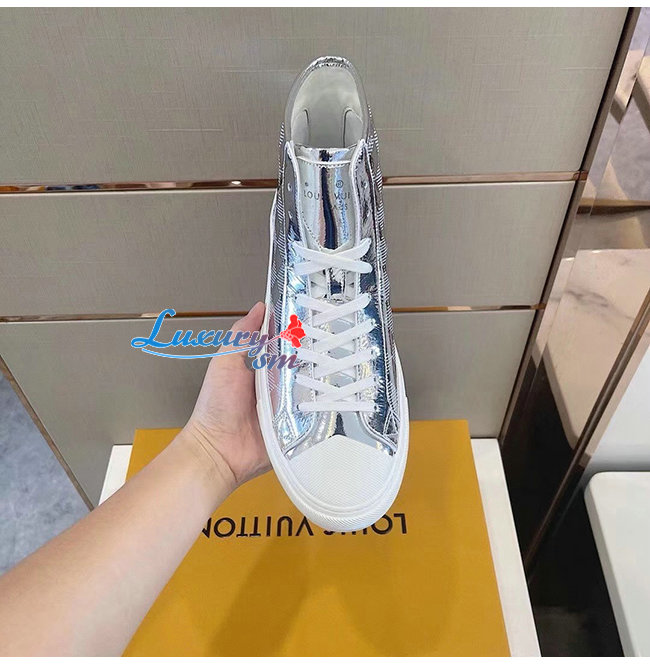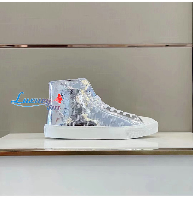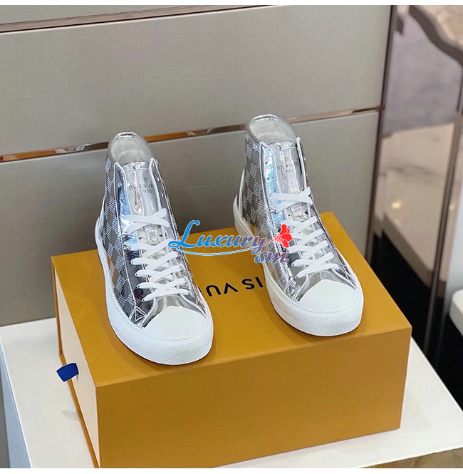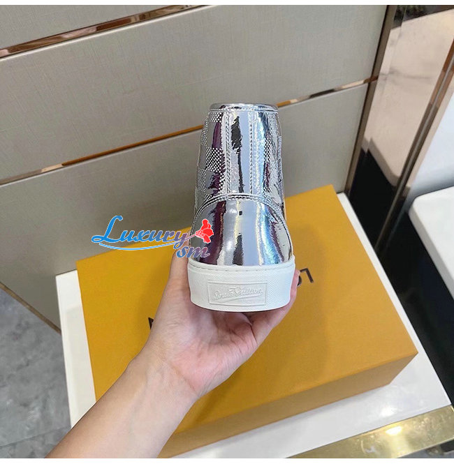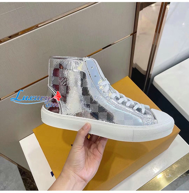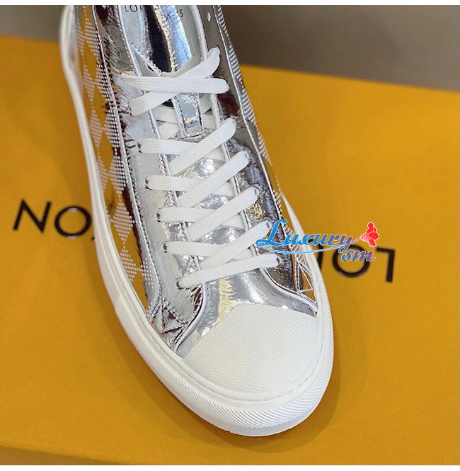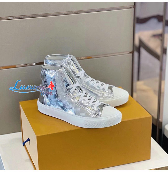 LOUIS VUITTON-1A90EO 루이비통 실버 메탈릭 다미에 타투 스니커 부츠