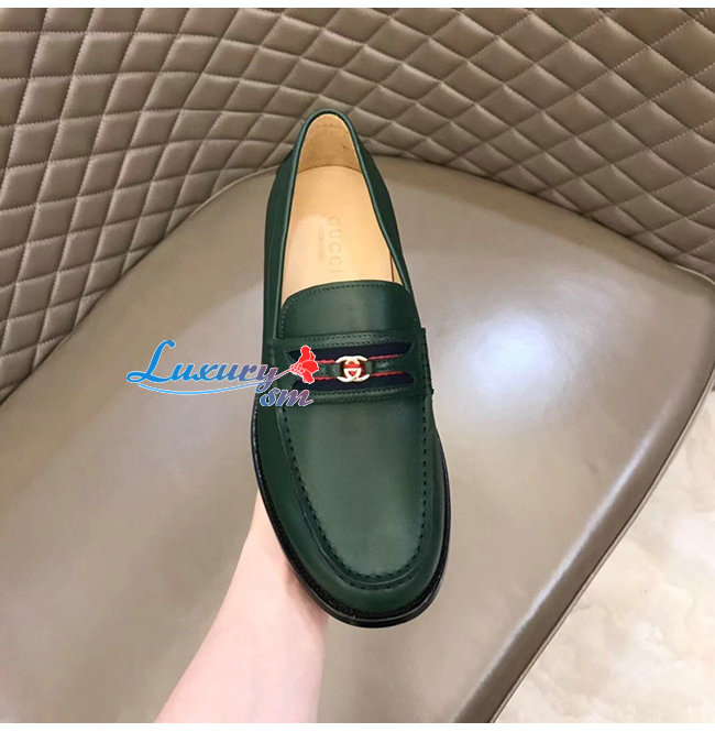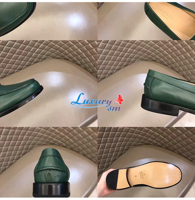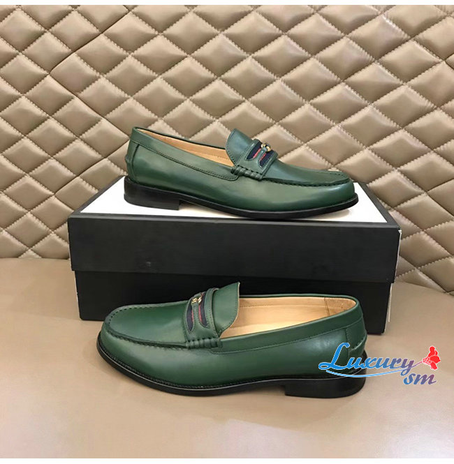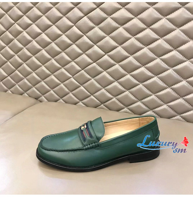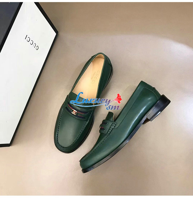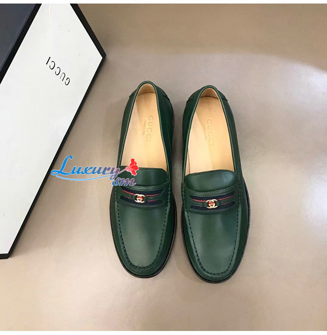 [스페셜오더]GUCCI-644724 3160 구찌 그린 가죽 더블 G 장식 로퍼