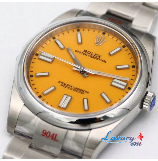 [스페셜오더]ROLEX-롤렉스 오이스터 퍼페츄얼 스틸 옐로우 다이얼 클래식 시계 41mm #롤렉스짝퉁 가격 : 680,000원