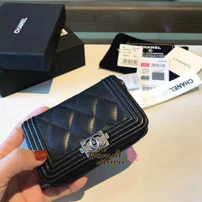 보이 샤넬 지퍼 반지갑은 동전지갑 및 카드지갑