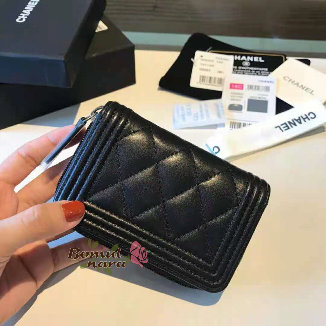 [스페셜오더]CHANEL-A80602 샤넬 블랙 램스킨 실버 보이 샤넬 동전&카드 지갑