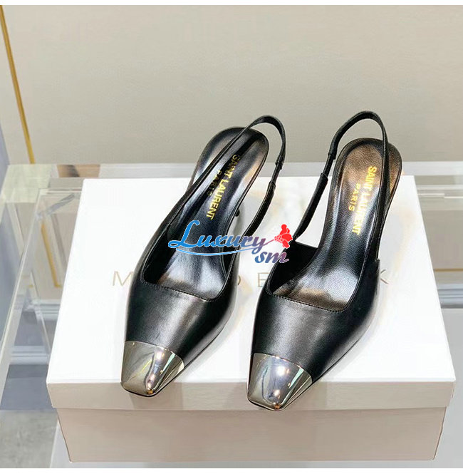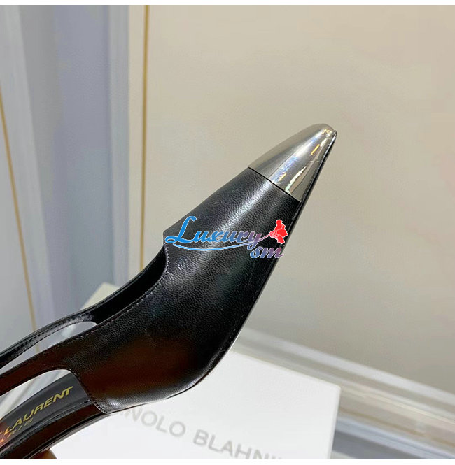 SAINT LAURENT-660540 생 로랑 블랙 고트스킨 BLADE 슬링백 펌프스