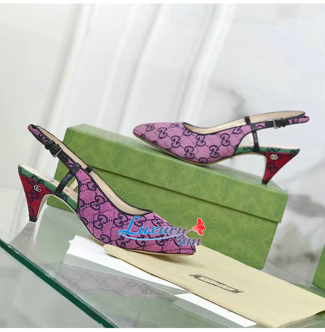 GUCCI-659574 5292 구찌 핑크 GG 미드힐 슬링백