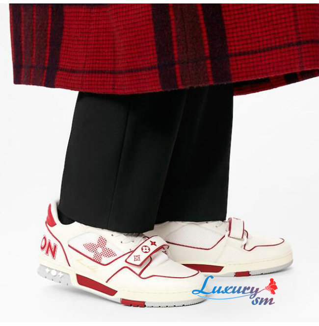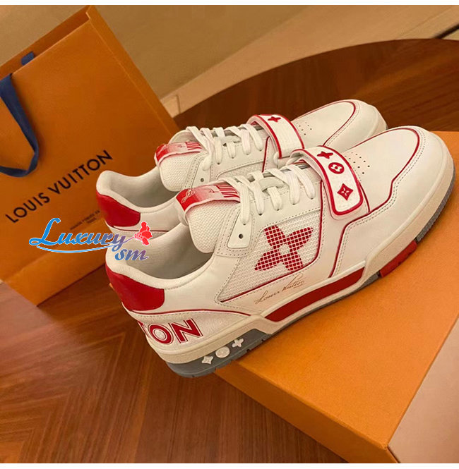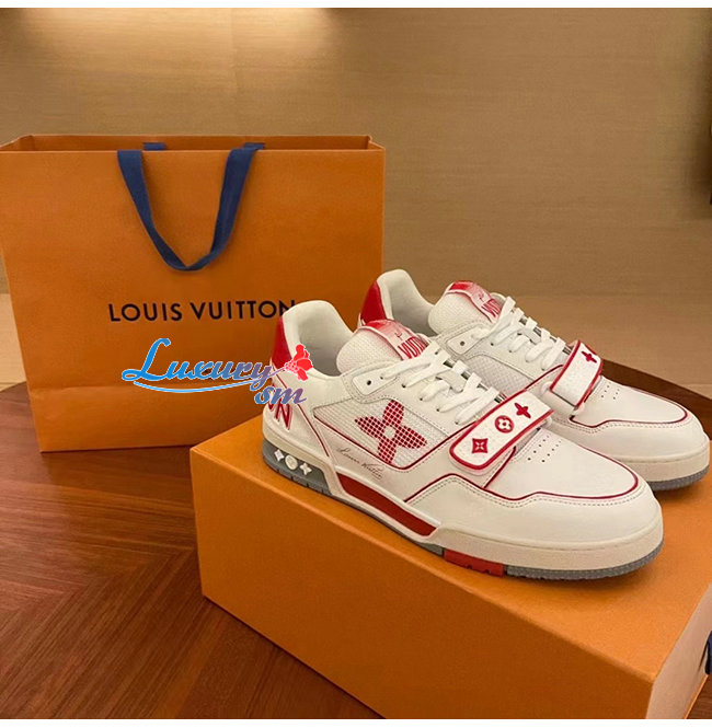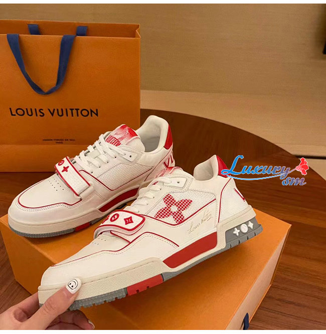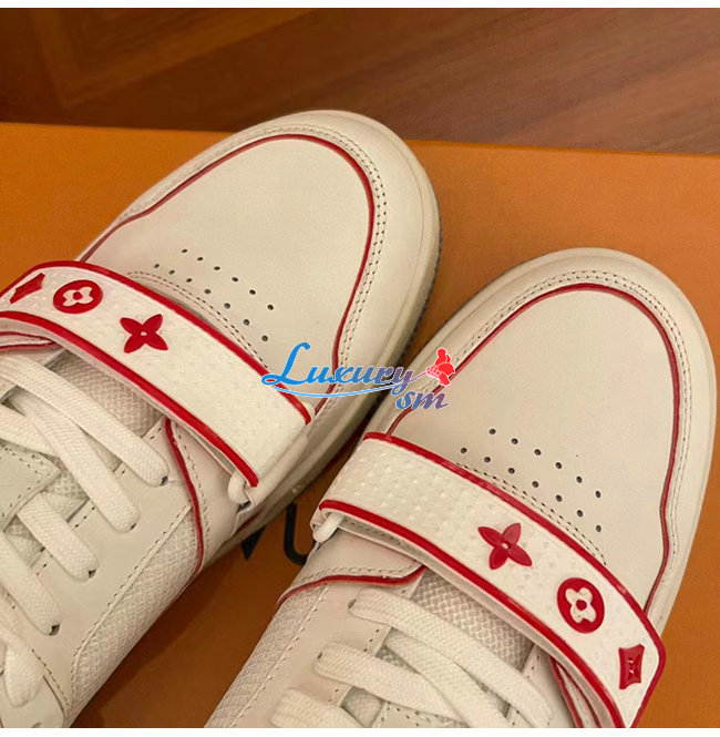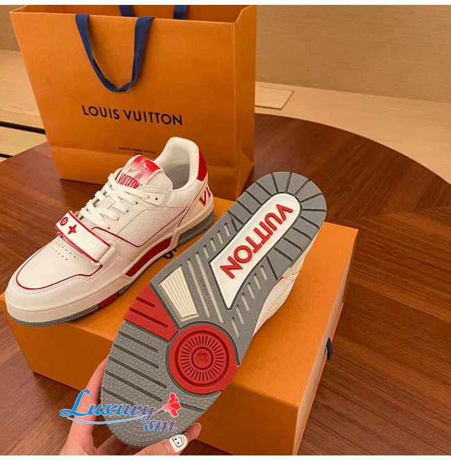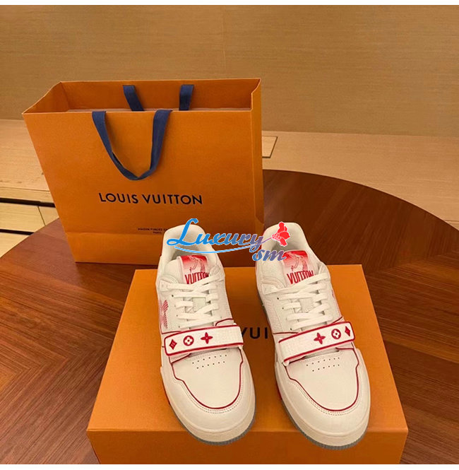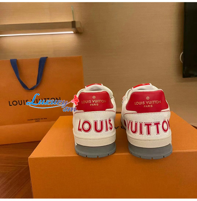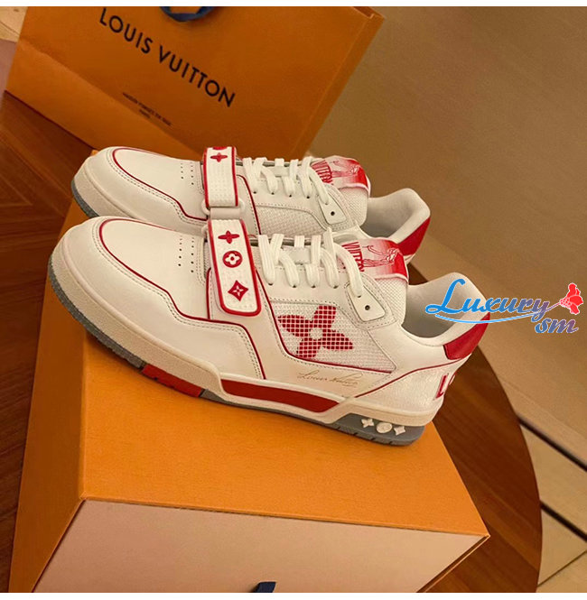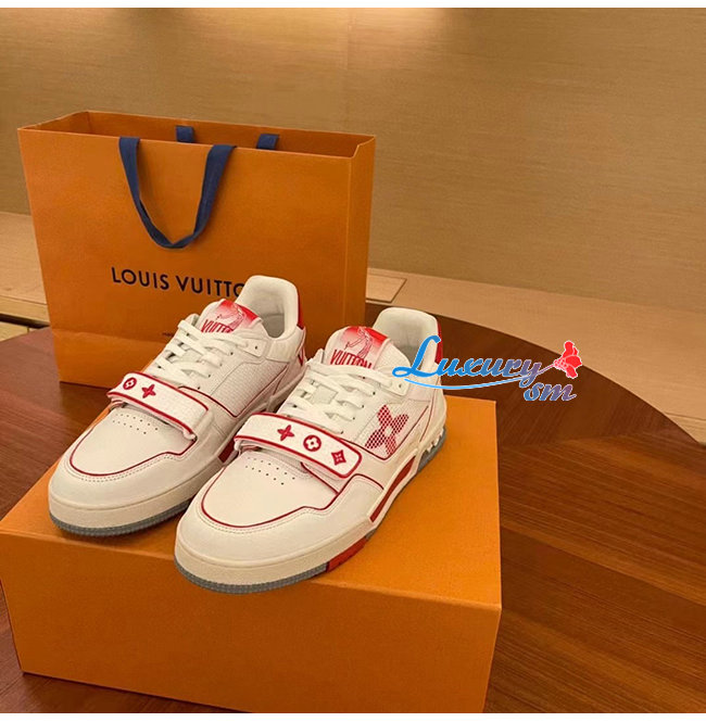 [스페셜오더]LOUIS VUITTON-1A98VC 루이비통 화이트/레드 송아지 가죽 LV 트레이너 스니커즈 남여공용