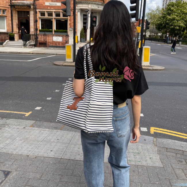 [스페셜오더]CELINE-196923 셀린느 네이비&탄 라지 텍스타일 스트라이프 카바스 백