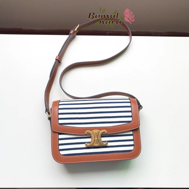 [스페셜오더]CELINE-191242 셀린느 네이비&탄 텍스타일 스트라이프 미디엄 트리오페 백