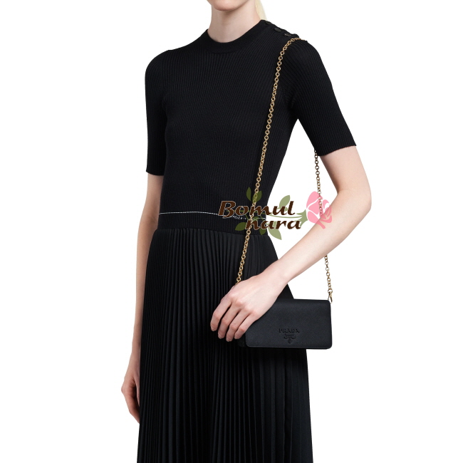 [스페셜오더]PRADA-1DH029 프라다 블랙 사피아노 가죽 미니 숄더백