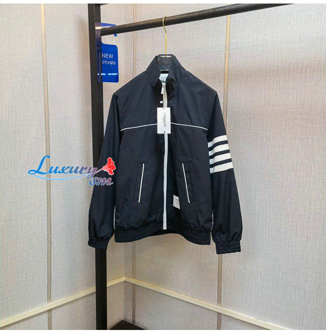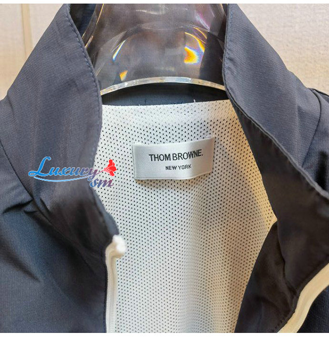 THOM BROWNE-072111 톰 브라운 네이비 나일론 스트라이프 장식 바람막이 쟈켓 남성용
