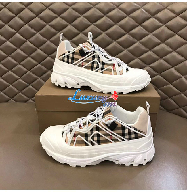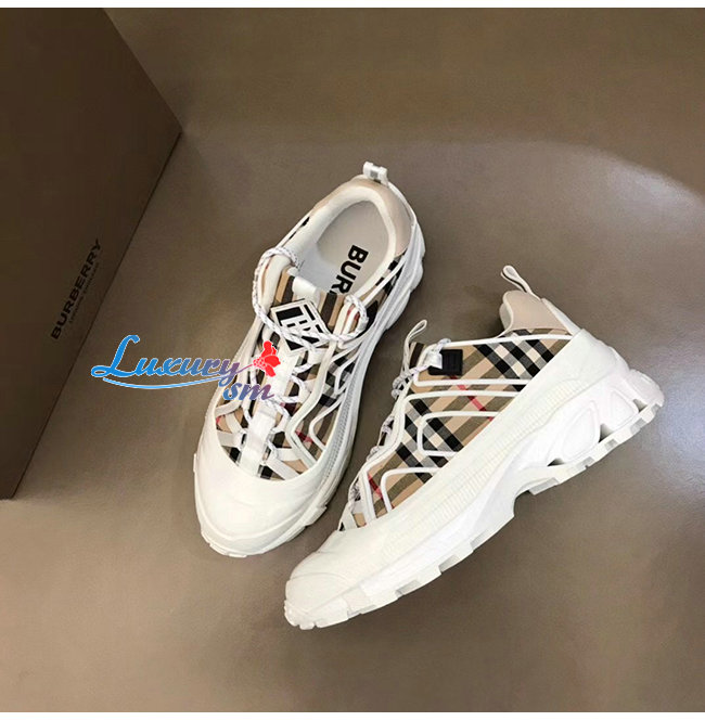 BURBERRY-80372541 버버리 베이지/화이트 빈티지 체크 코튼 레더 아서 스니커즈
