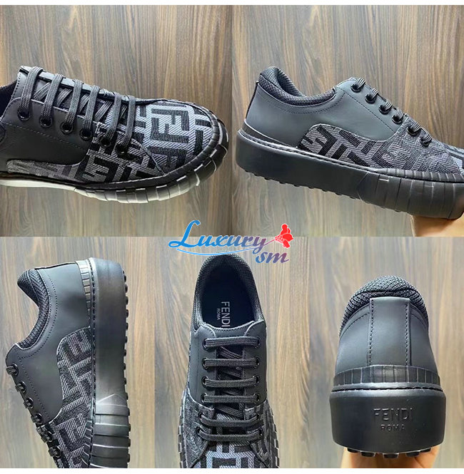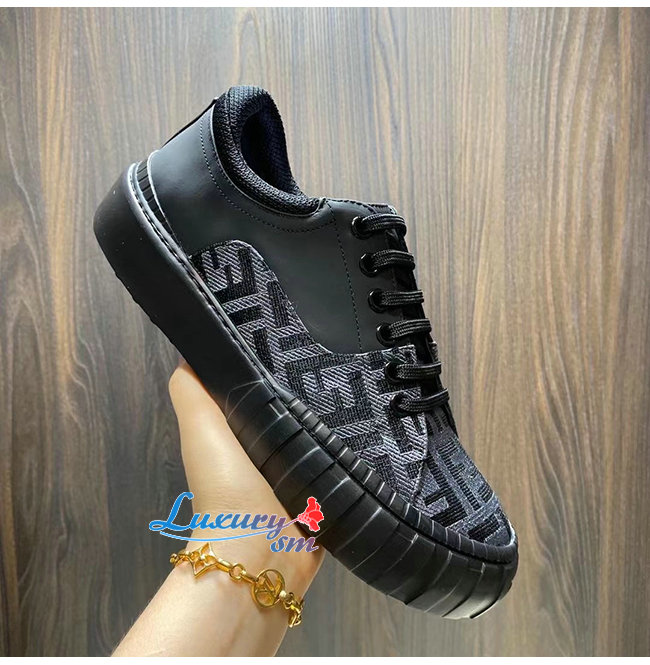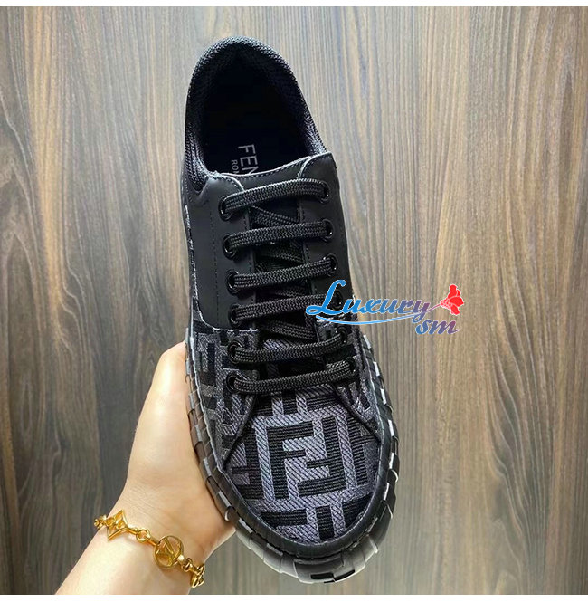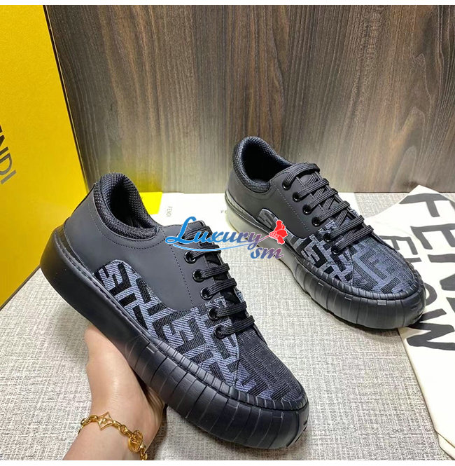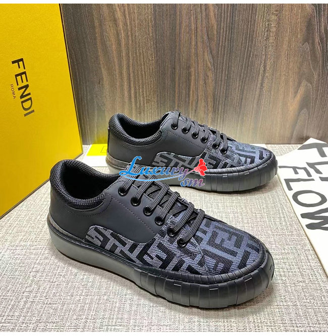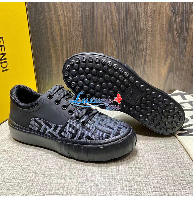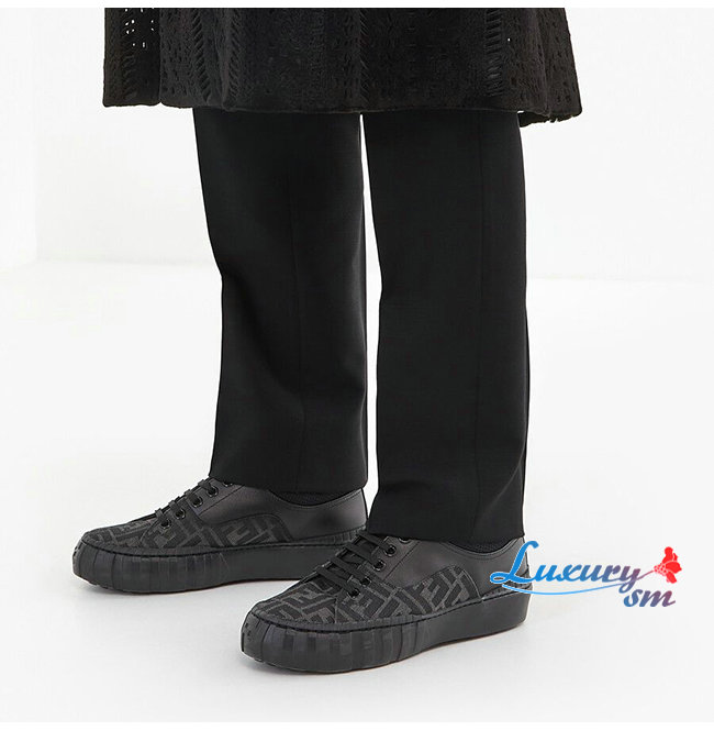 FENDI-7E1415 펜디 블랙 패브릭 더블 F 로우탑 스니커즈 남성용