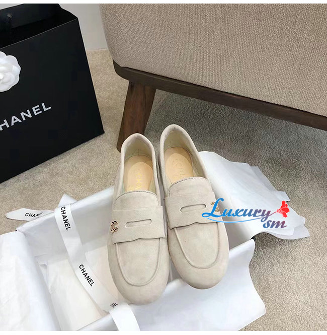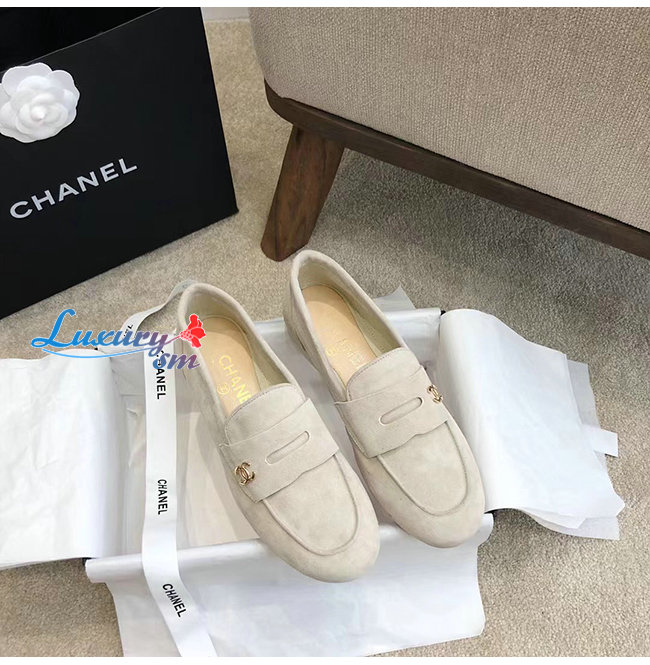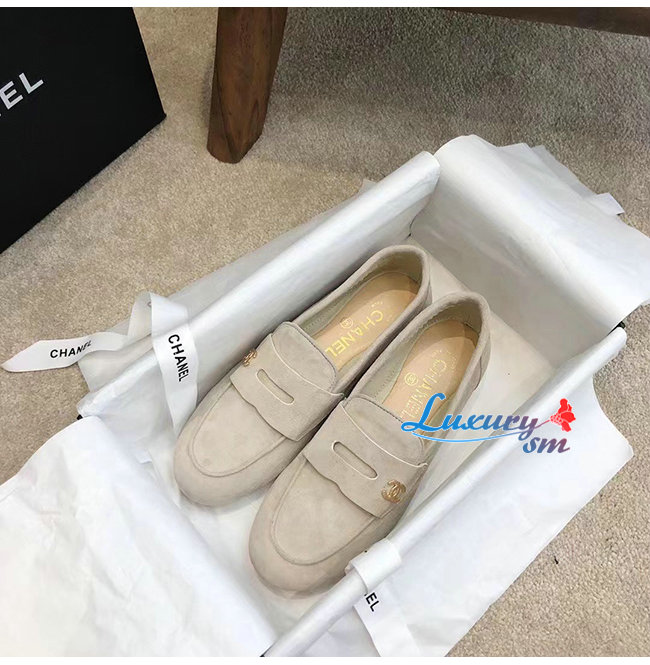 CHANEL-G37451 샤넬 베이지 스웨이드 카프스킨 로퍼 여성용