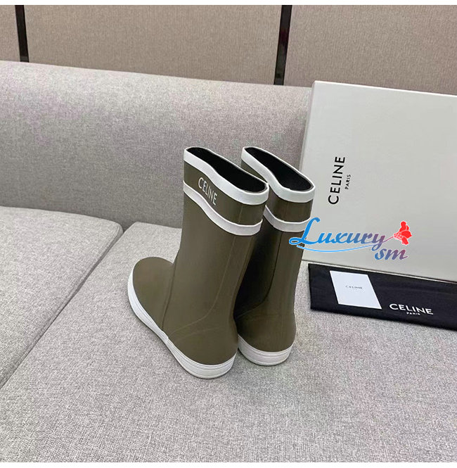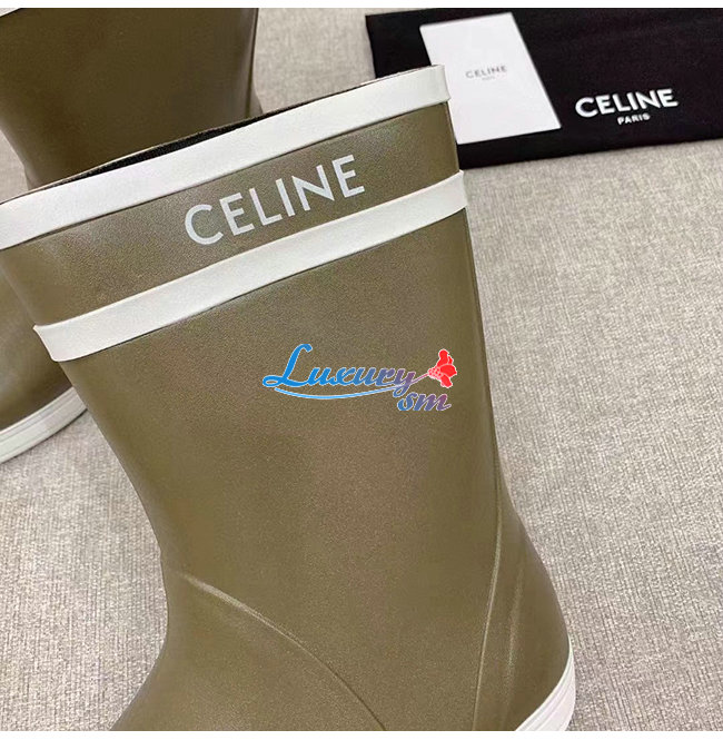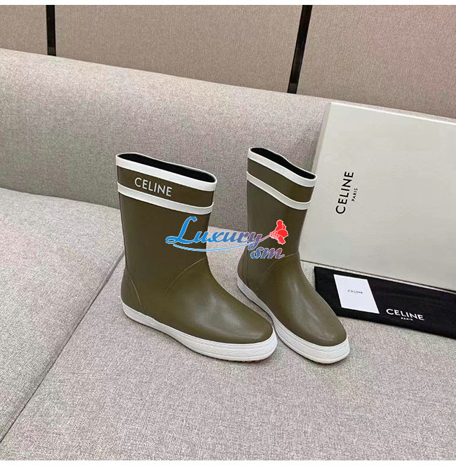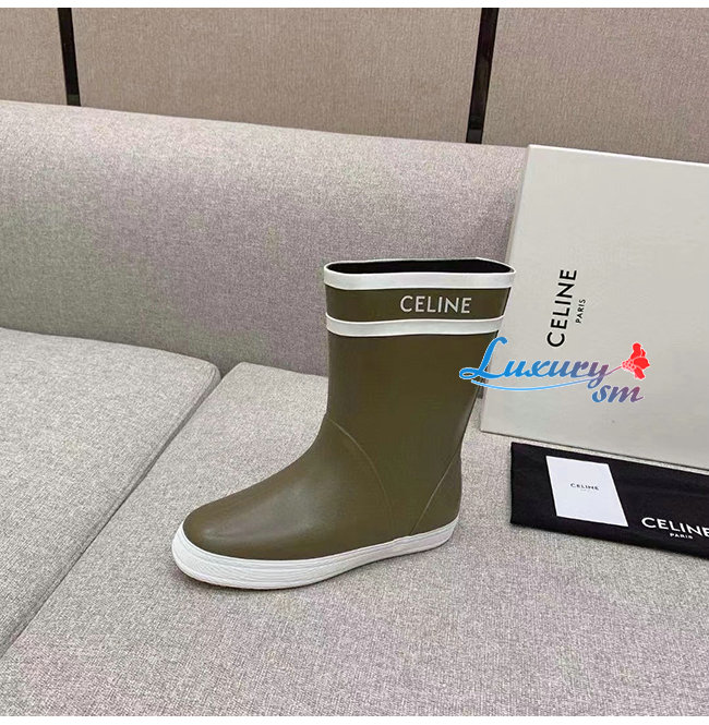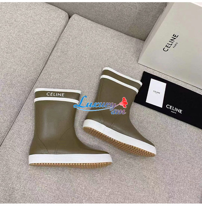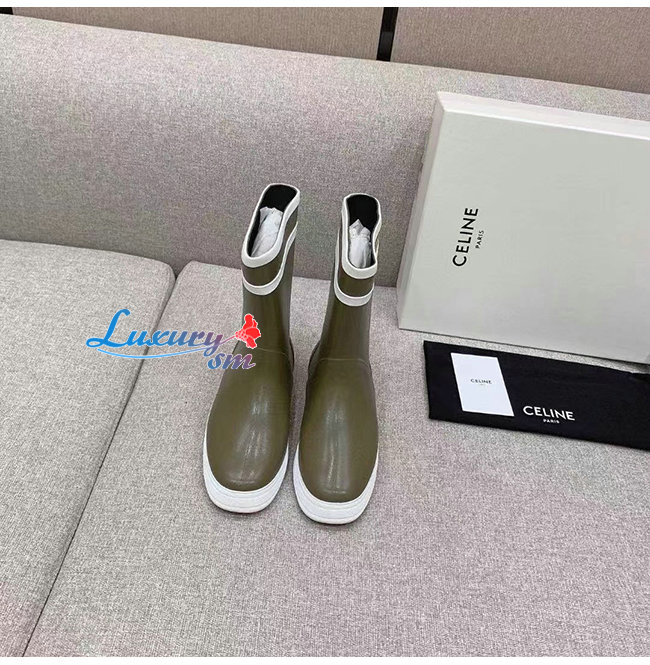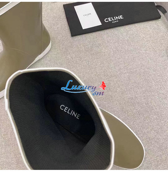 CELINE-343367 셀린느 카키 러버 플랫 하프 부츠 여성용