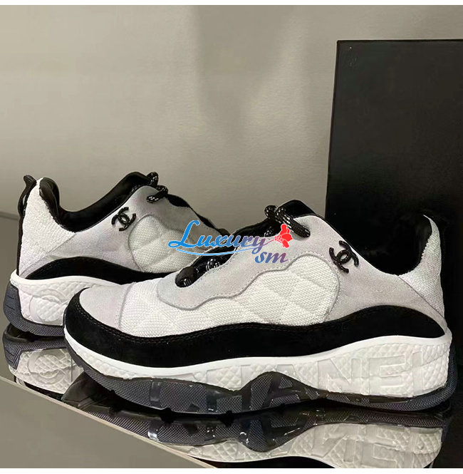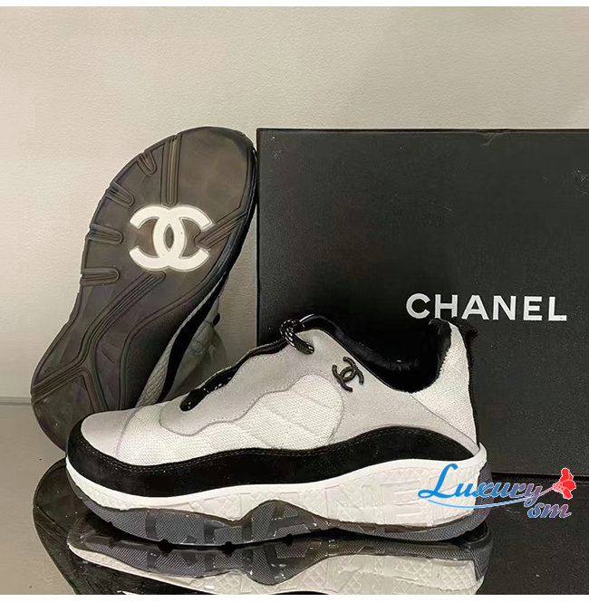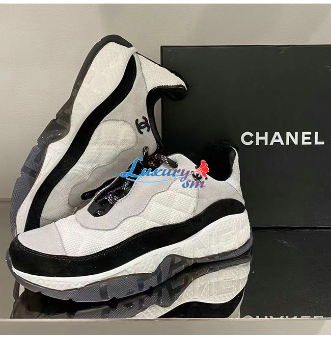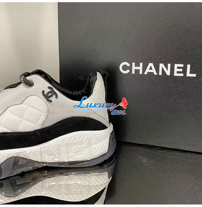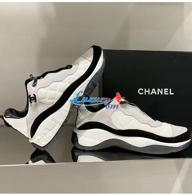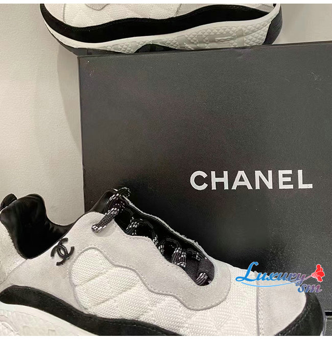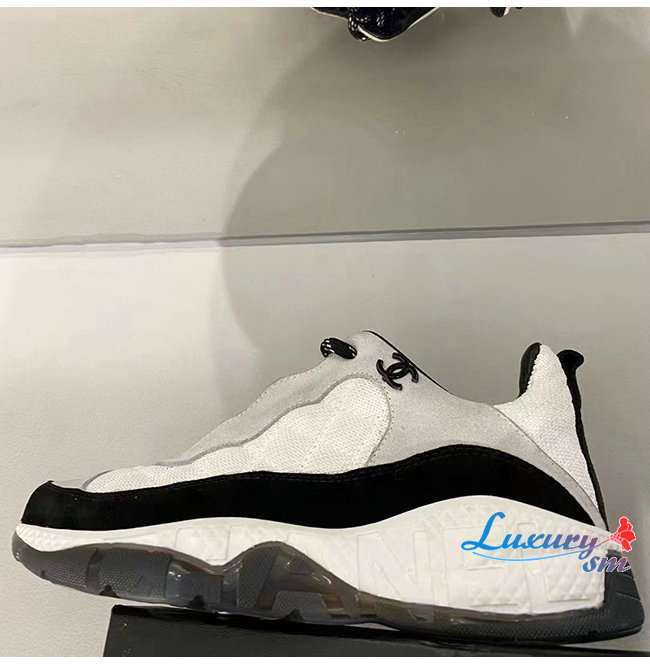CHANEL-G38290 샤넬 화이트 페브릭 스웨이드 카프스킨 스니커즈 여성용