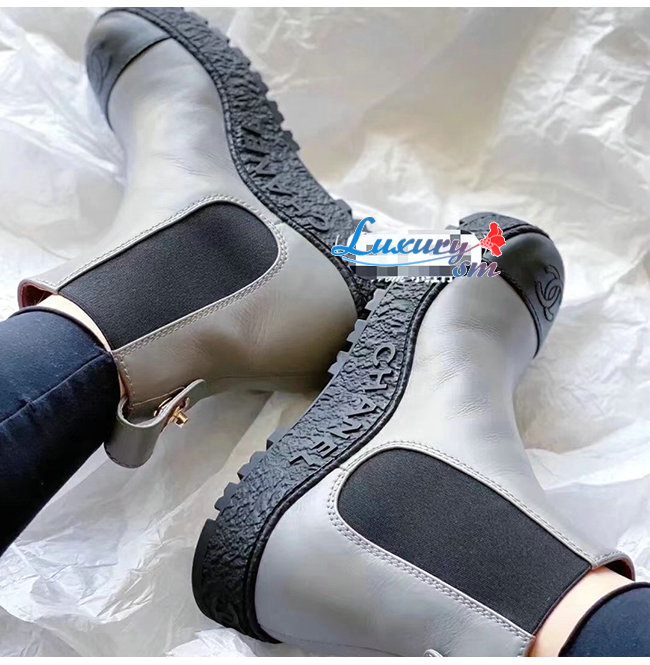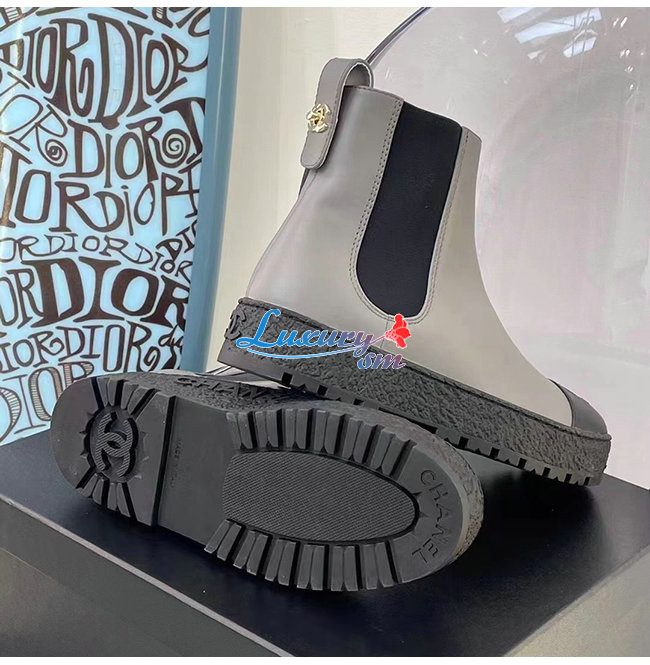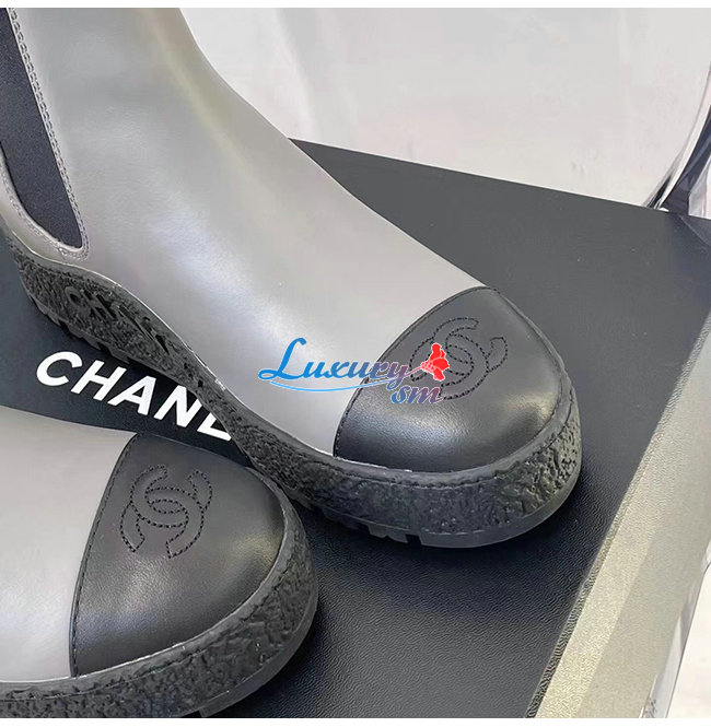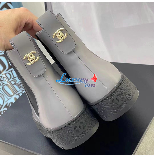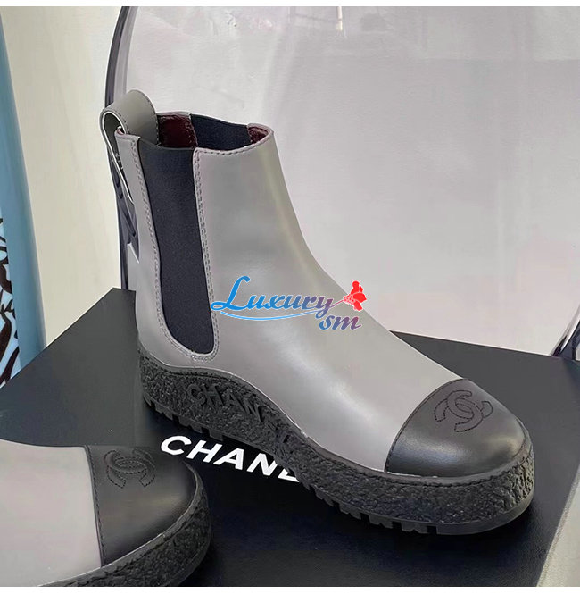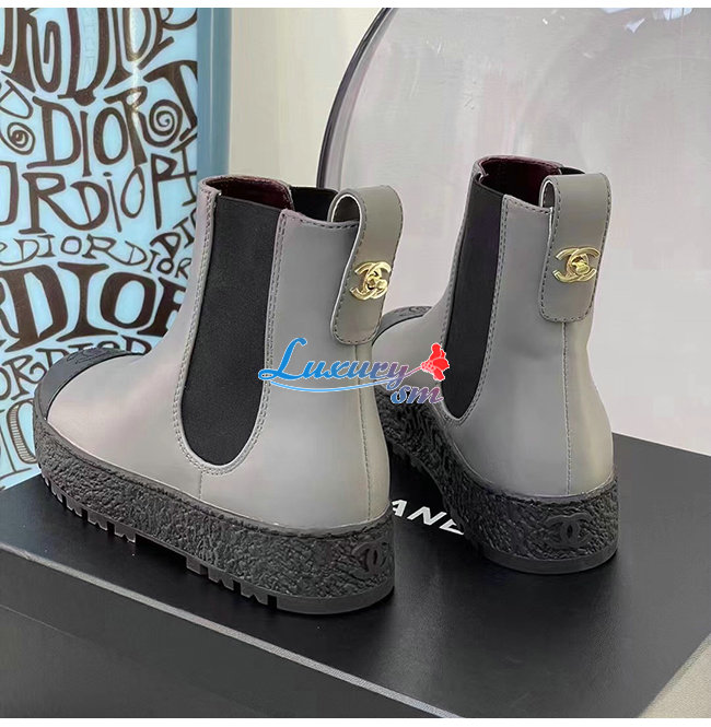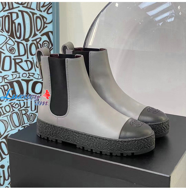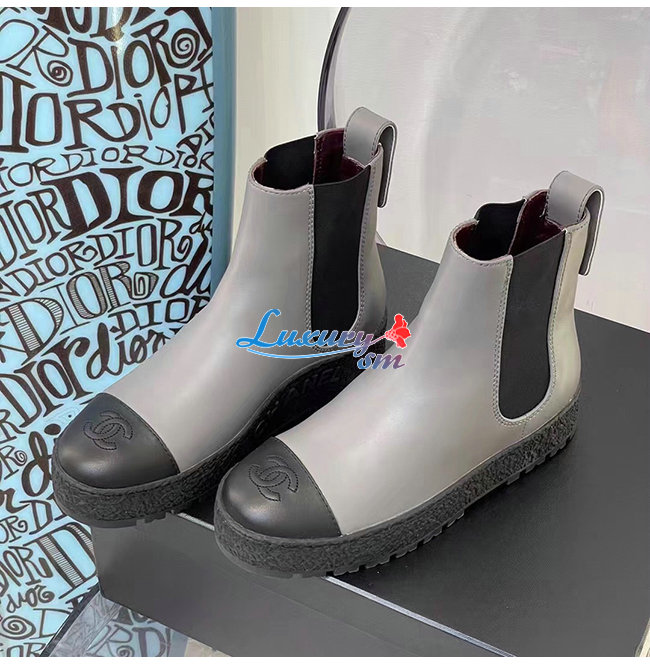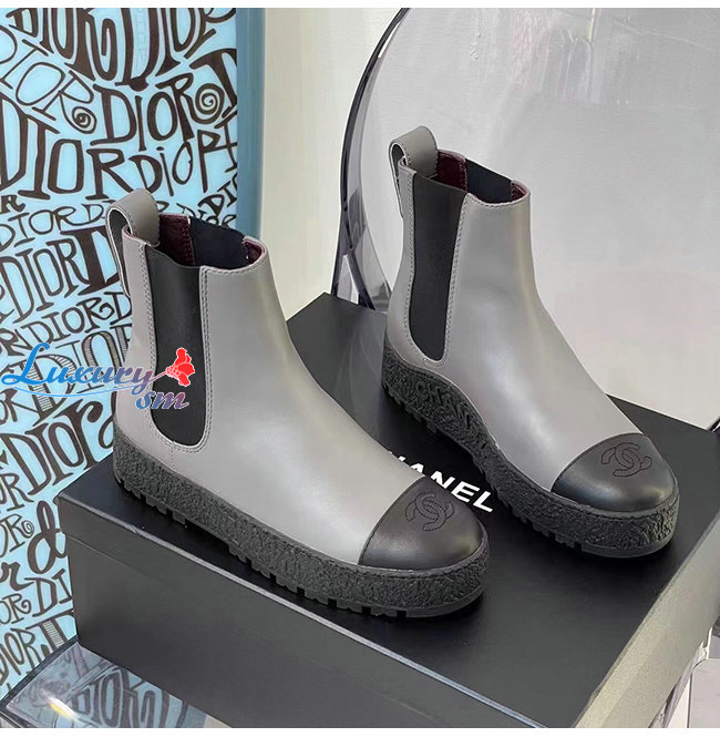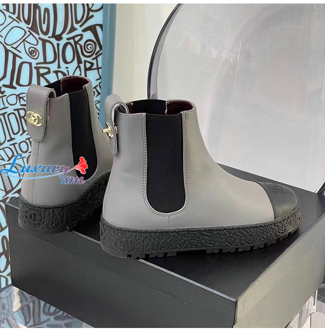 CHANEL-G37927 샤넬 그레이 카프스킨 쇼트 부츠 여성용