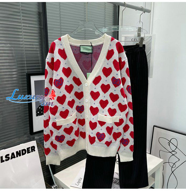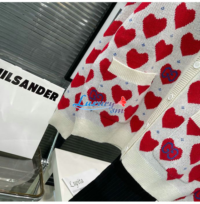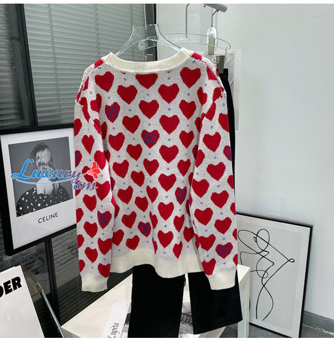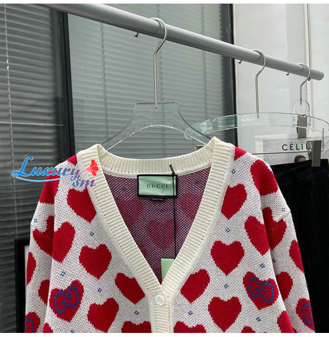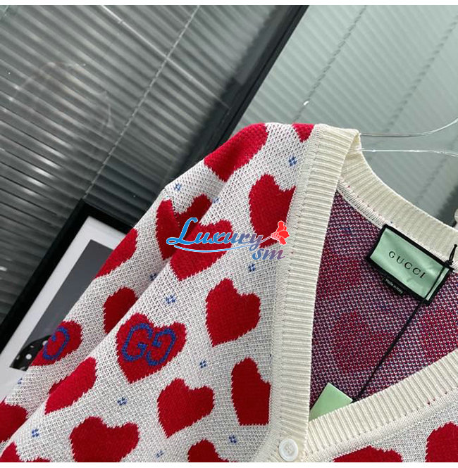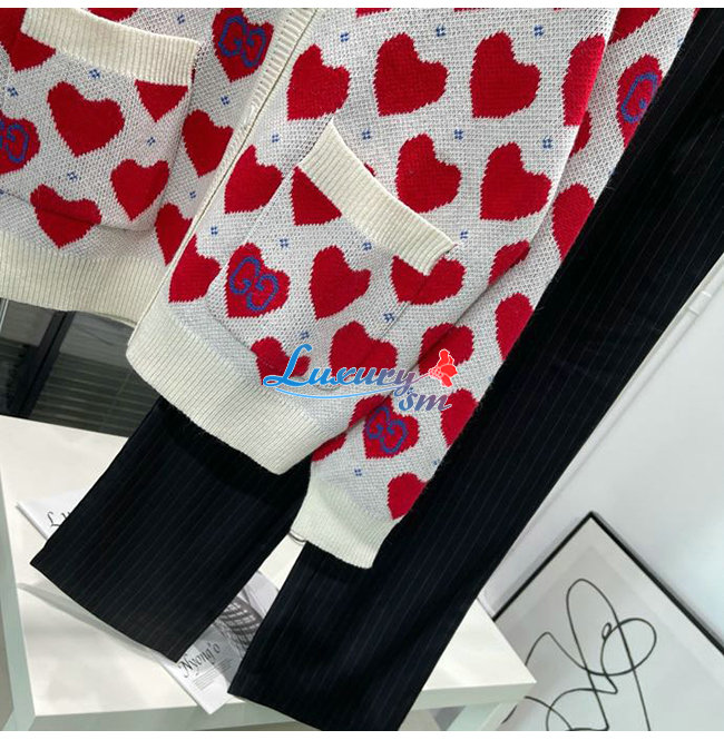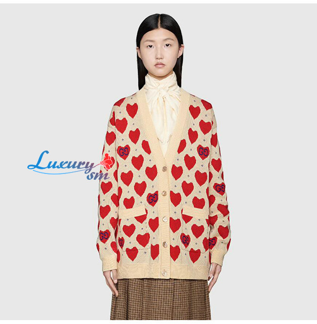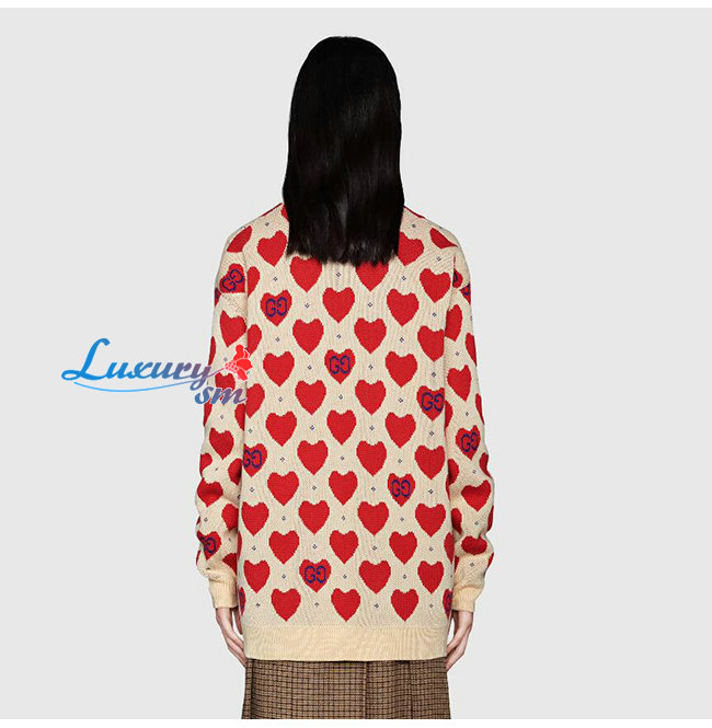 GUCCI-665119 9750 구찌 오프화이트/레드 구찌 레 뽐므 하트 스웨터