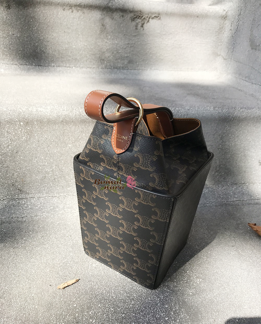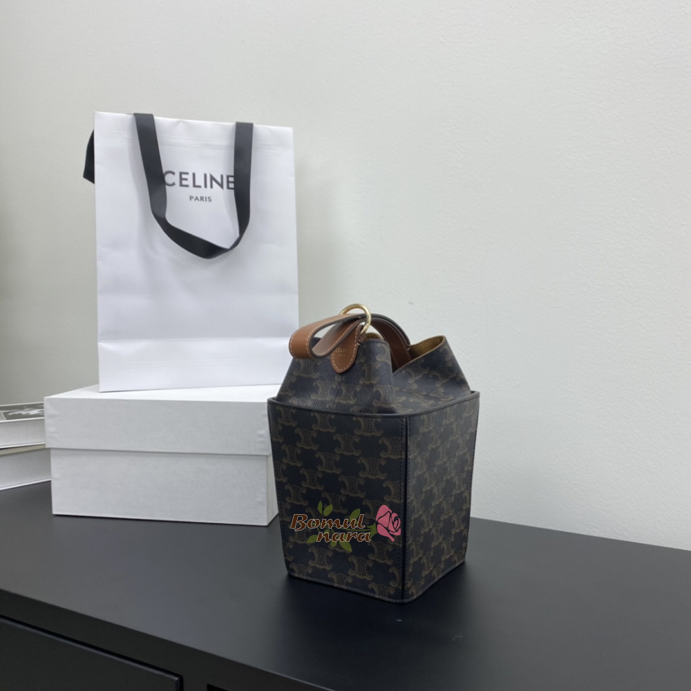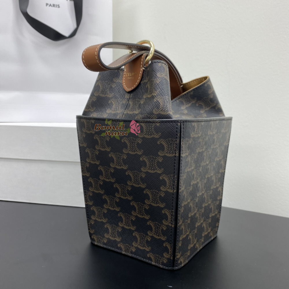 [스페셜오더]CELINE-197142 셀린느 탄 트리오페 캔버스 스트랩 박스 버킷백