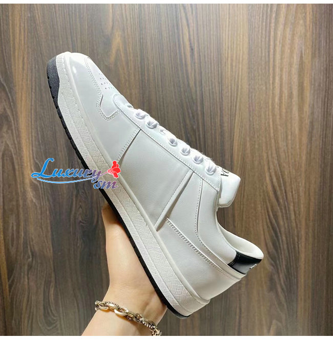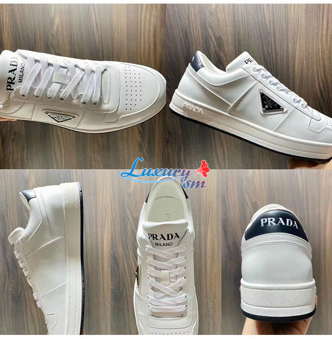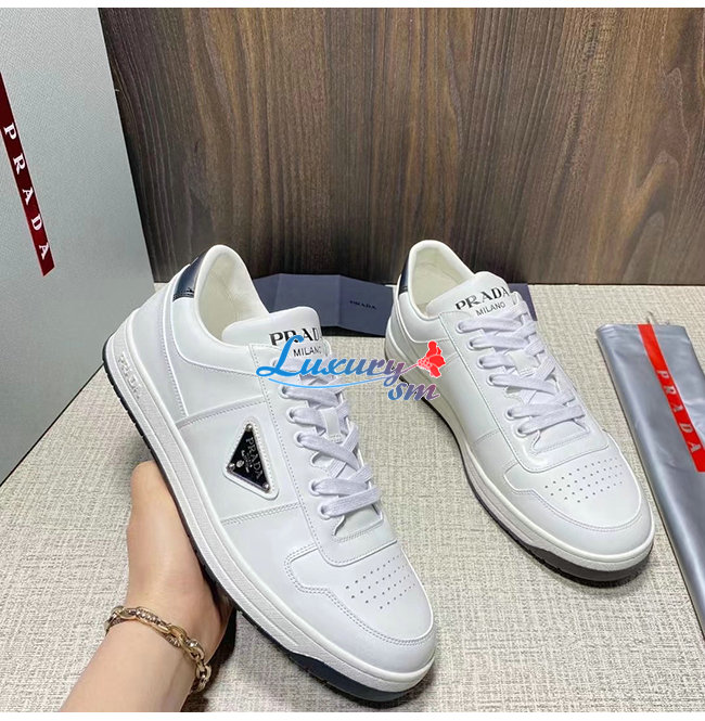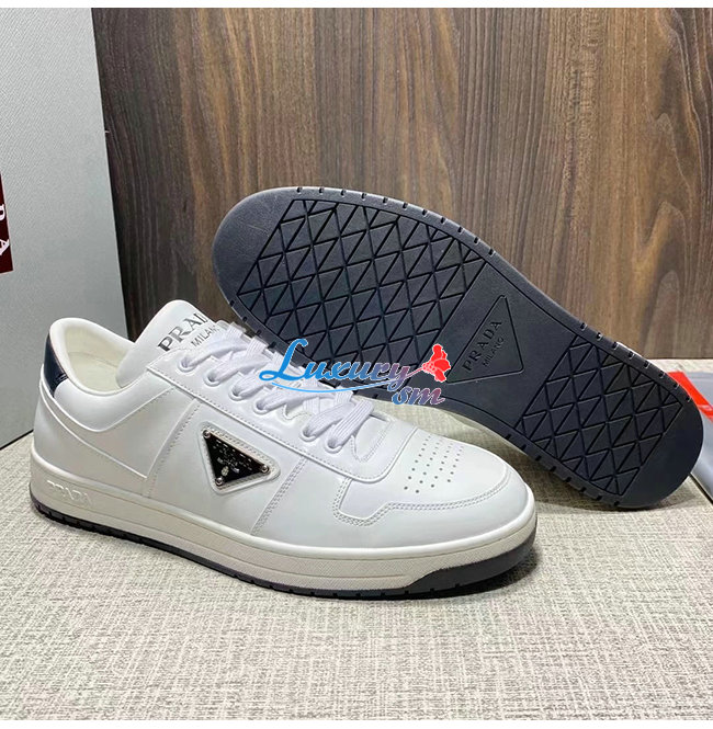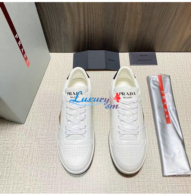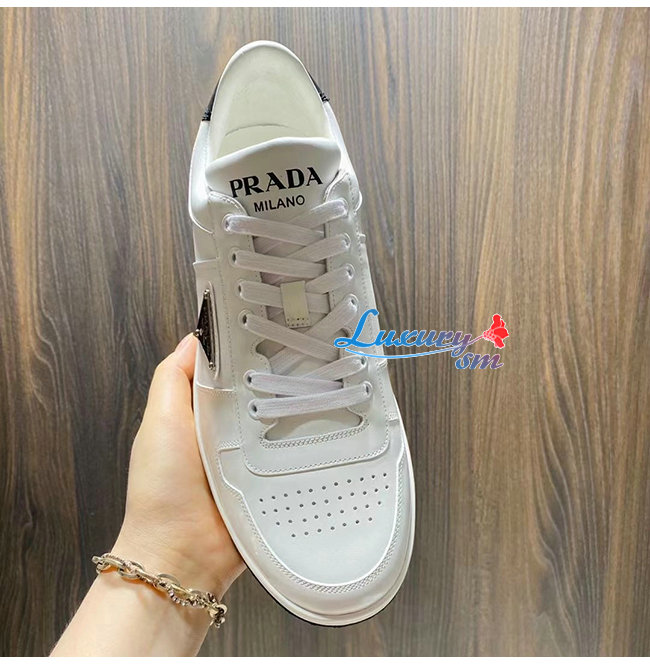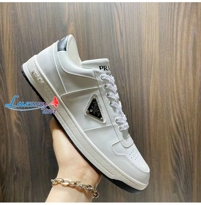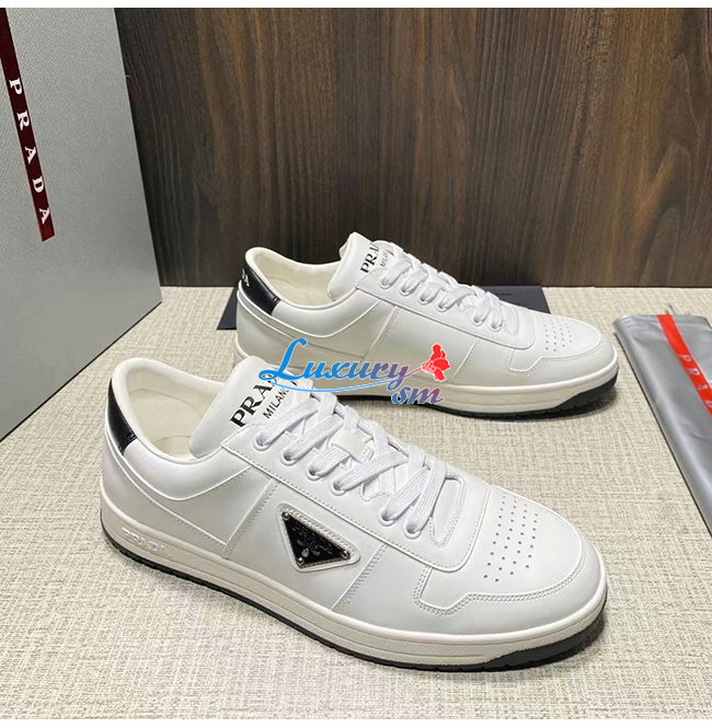 PRADA-2EE364 프라다 화이트 송아지 가죽 트라이앵글 로고 스니커즈