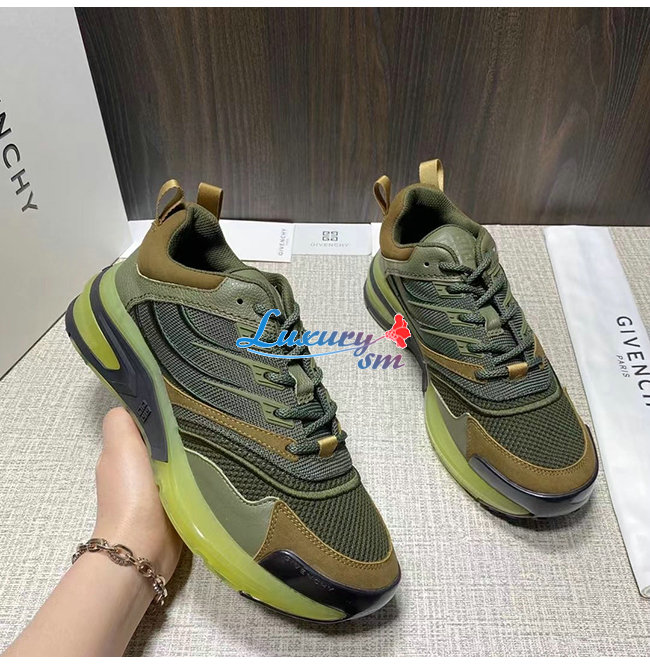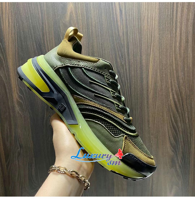 GIVENCHY-BH004WH 지방시 올리브 그린 송아지 가죽 메쉬 GIV 1 스니커즈 남성용