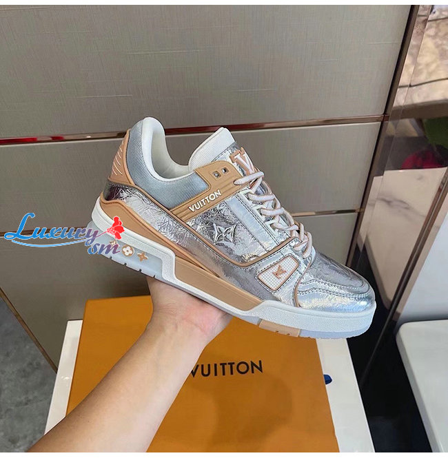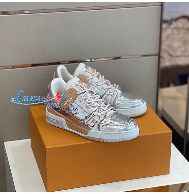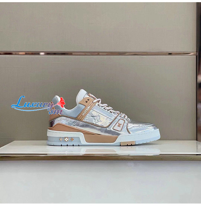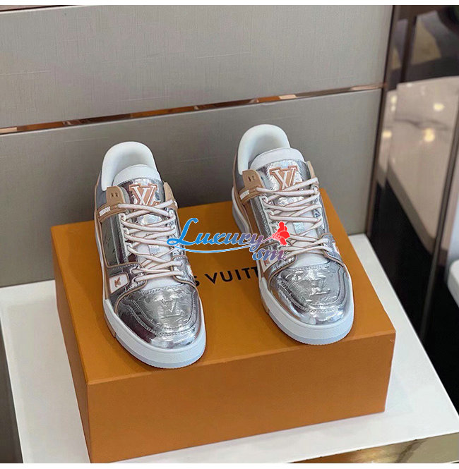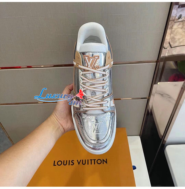 LOUIS VUITTON-1A996H 루이비통 실버 메탈릭 가죽 LV 트레이너 스니커즈