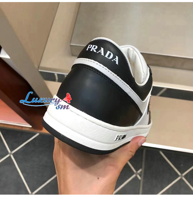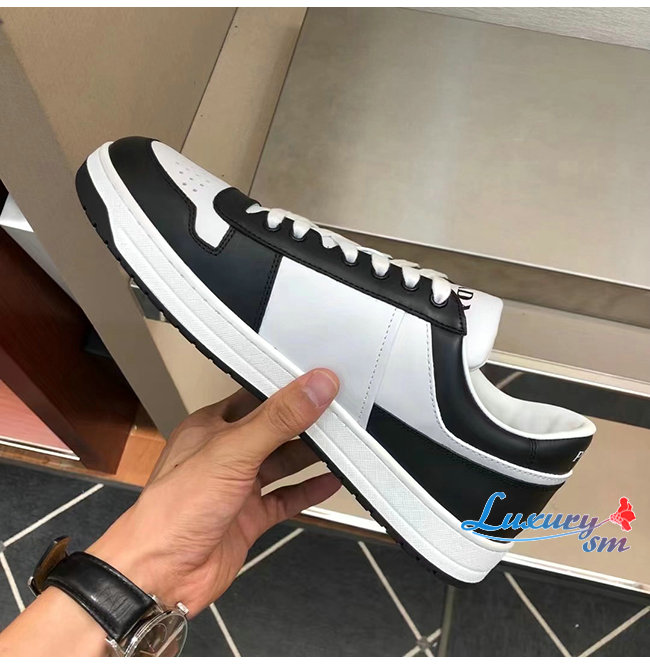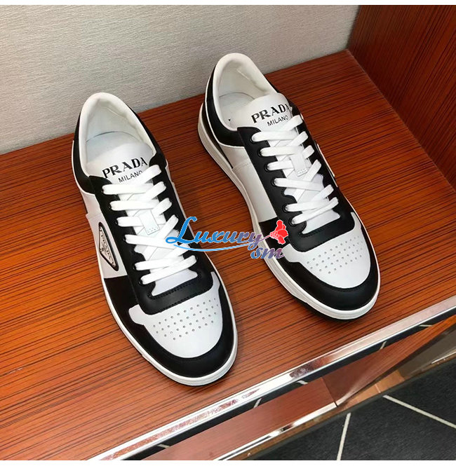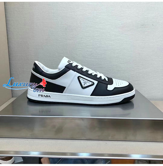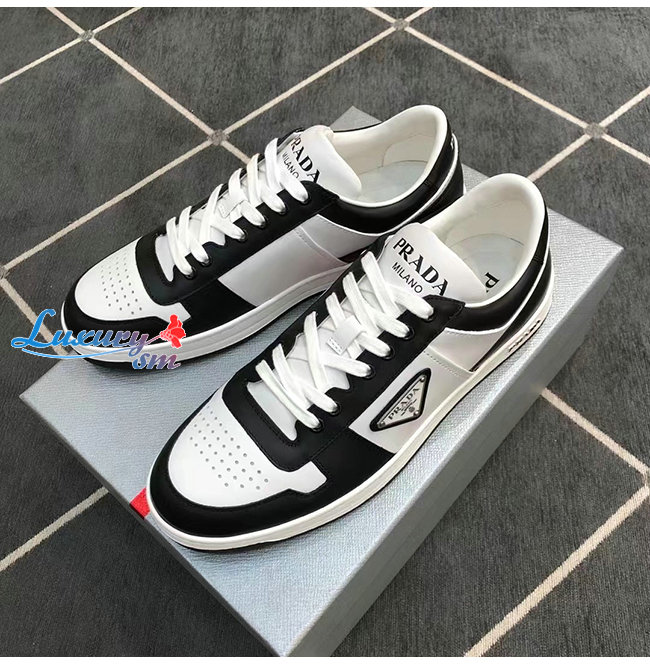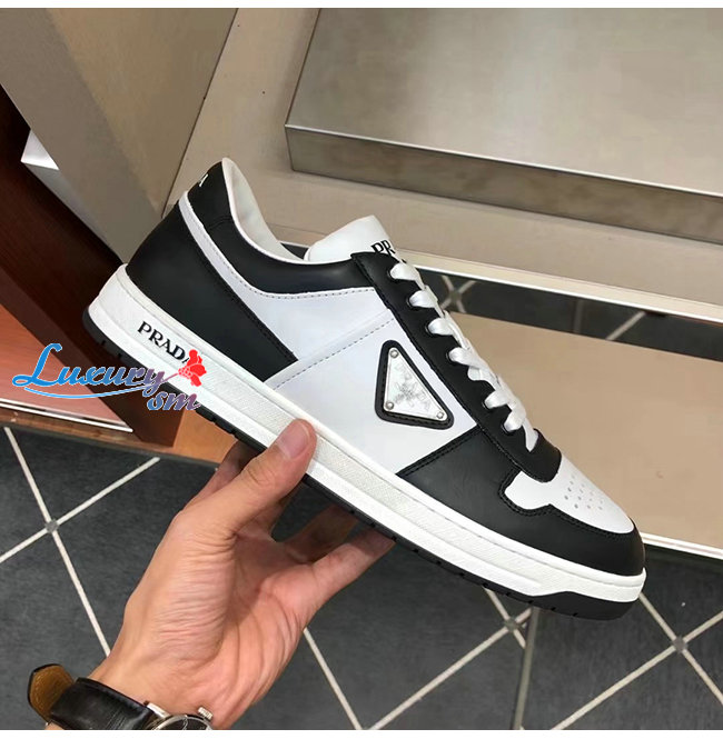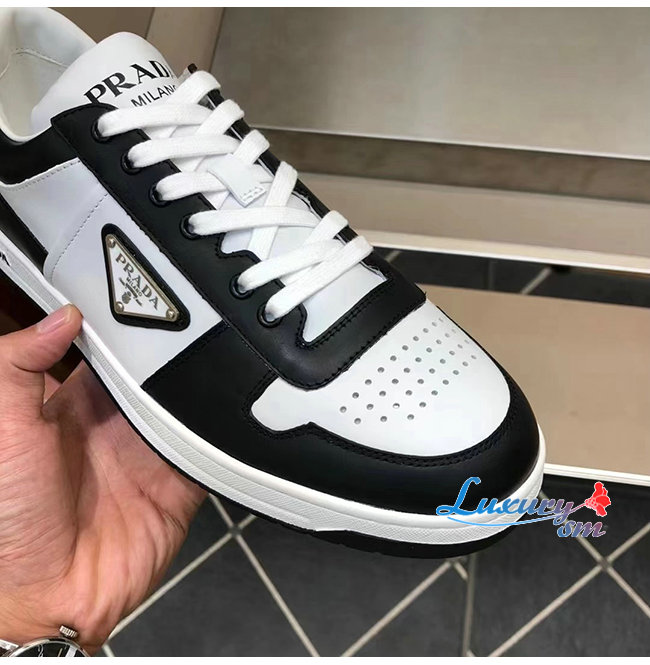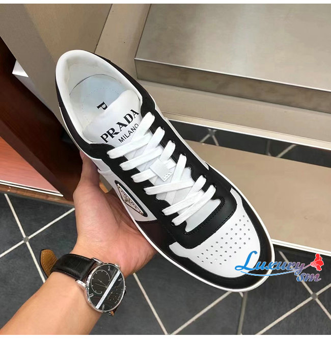 PRADA-2EE363 프라다 화이트/블랙 송아지 가죽 러버 트라이앵글 스니커즈
