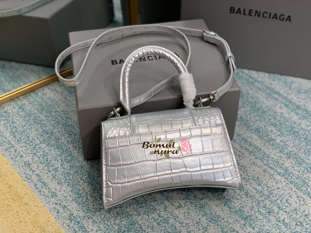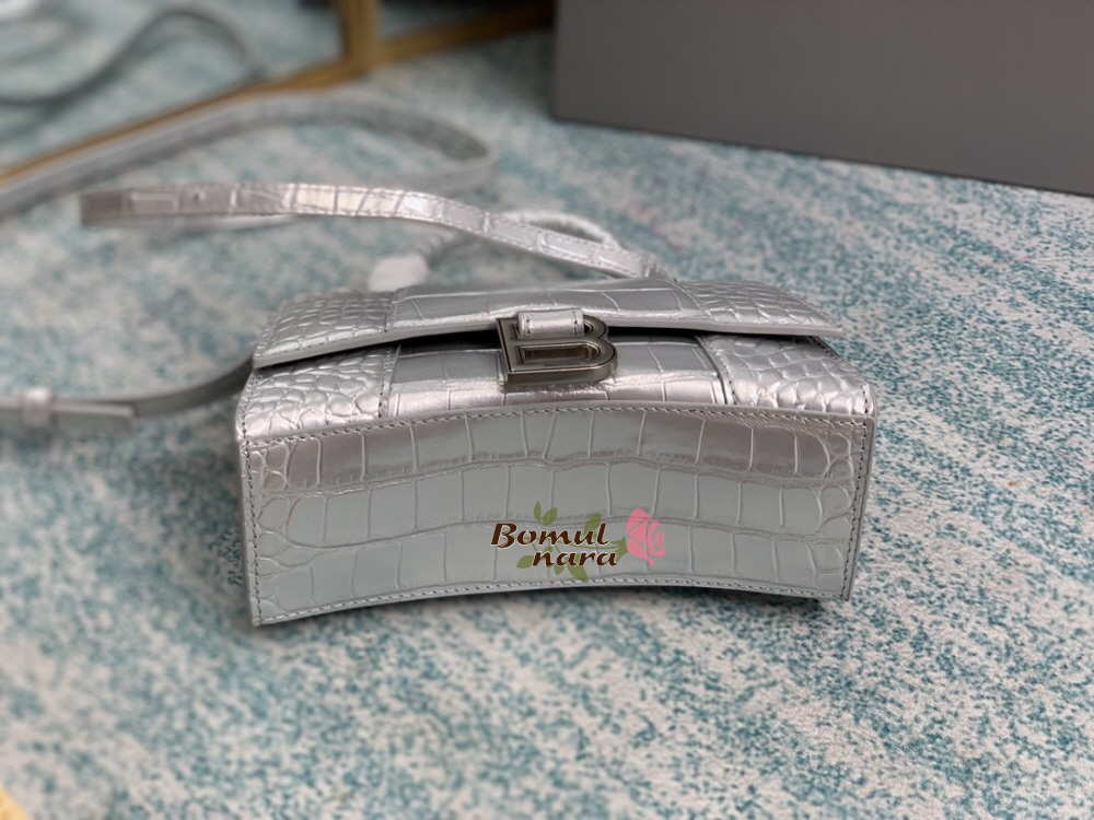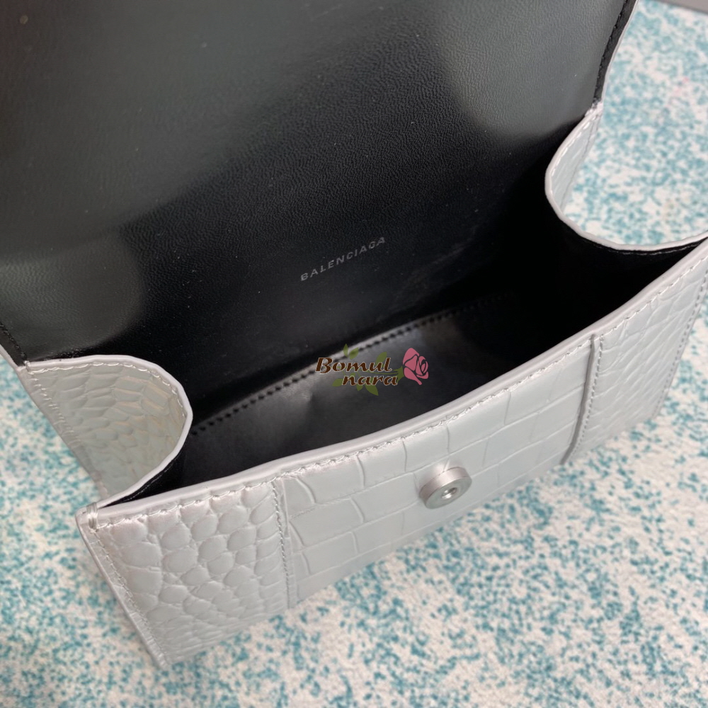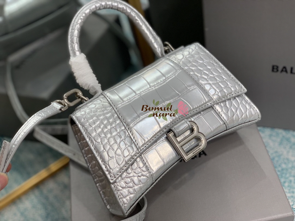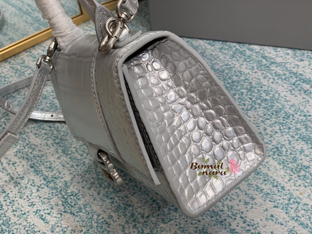 [스페셜오더]BALENCIAGA-592833 발렌시아가 메탈릭 실버 크로커다일 아워글래스 탑 핸들백 XS