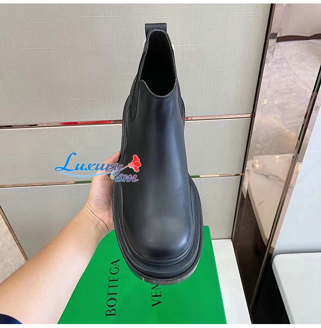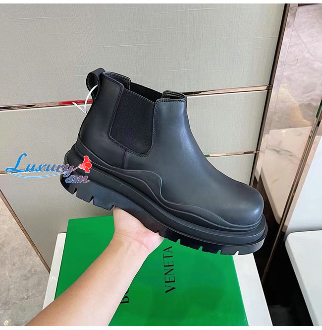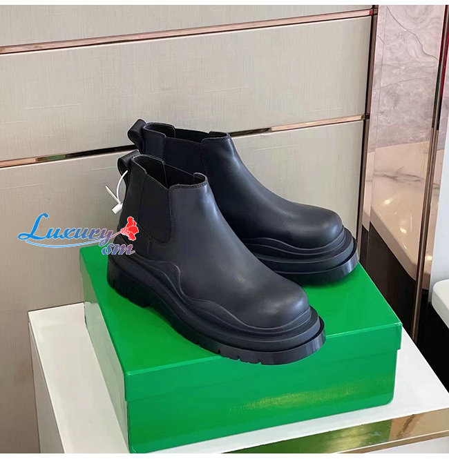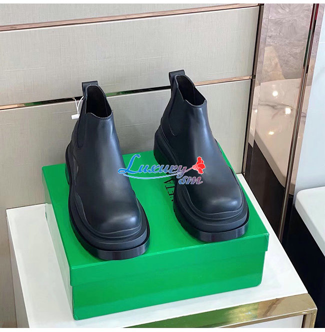 BOTTEGA VENETA-630281 보테가 베네타 블랙 송아지 가죽 타이어 크롭 첼시 부츠 남여공용