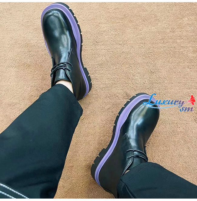 BOTTEGA VENETA-667074 보테가 베네타 플럼 송아지 가죽 타이어 데저트 부츠 남여공용