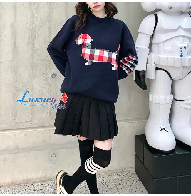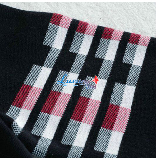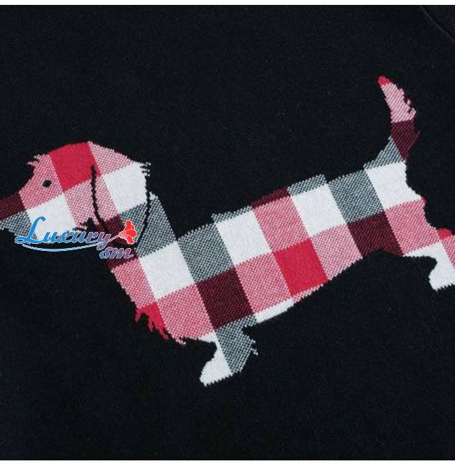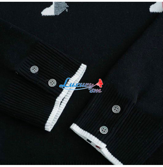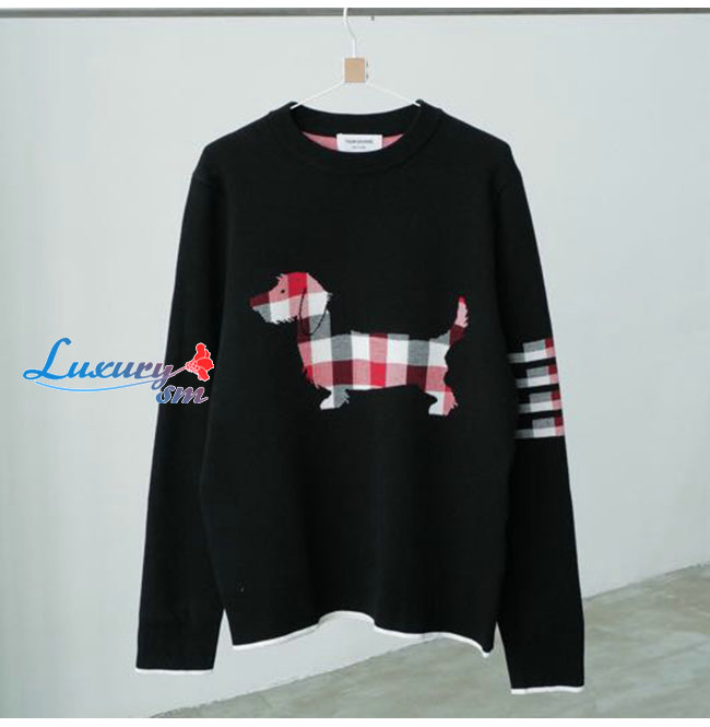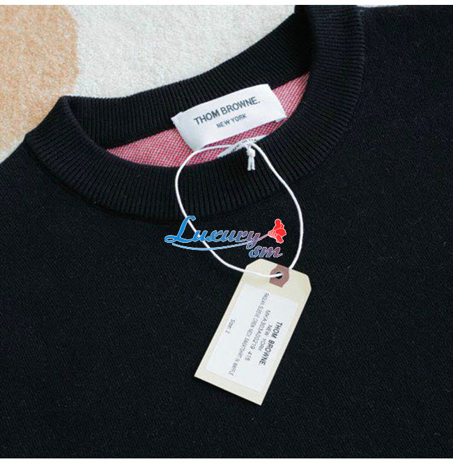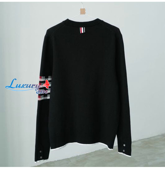 THOM BROWNE-111211 톰 브라운 블랙 니트 코튼 체크 무늬 디테일 스웨터 남여공용