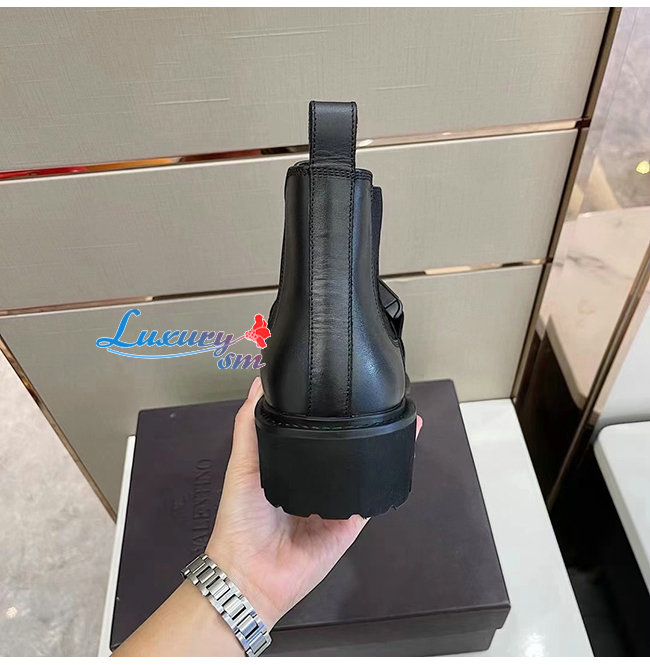 송아지 가죽 소재의 비틀 부츠 VLTN 로고 장식