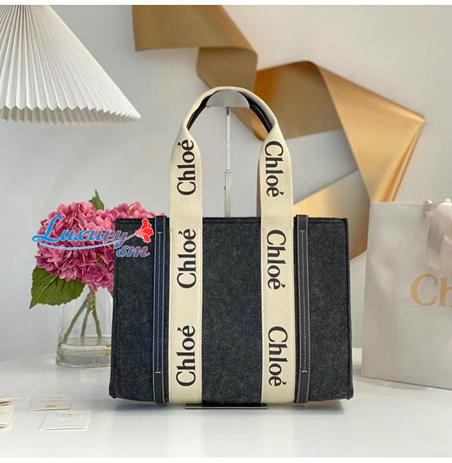 [스페셜오더]Chloe-WS383 끌로에 그레이 WOODY 미디엄 토트 백
