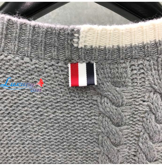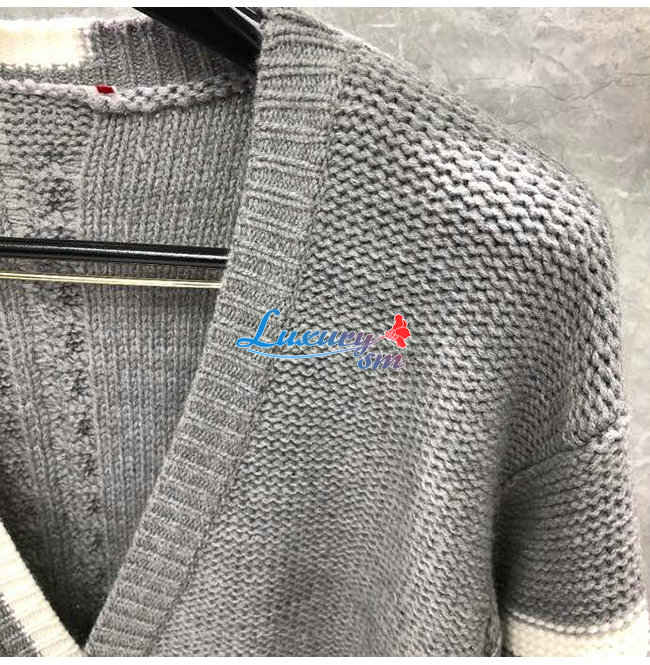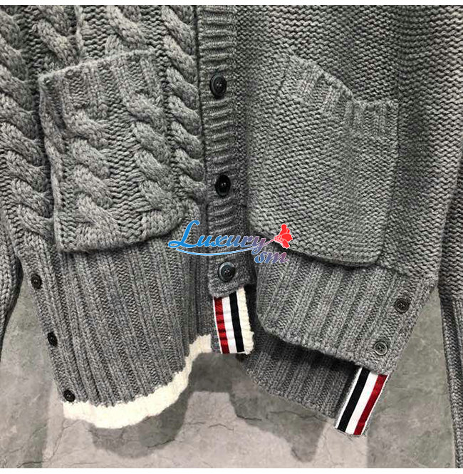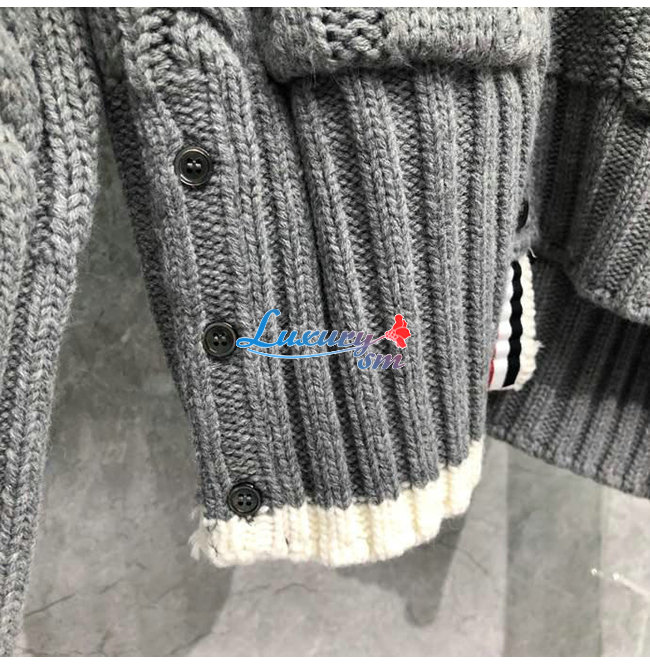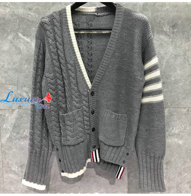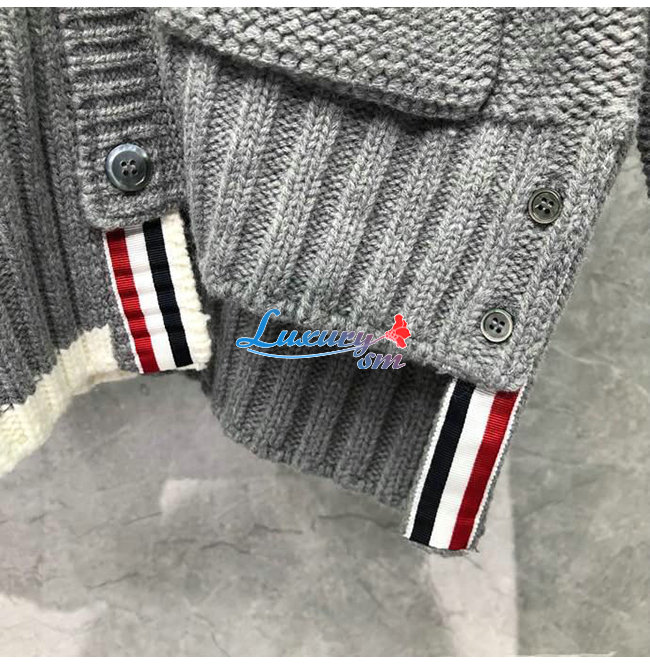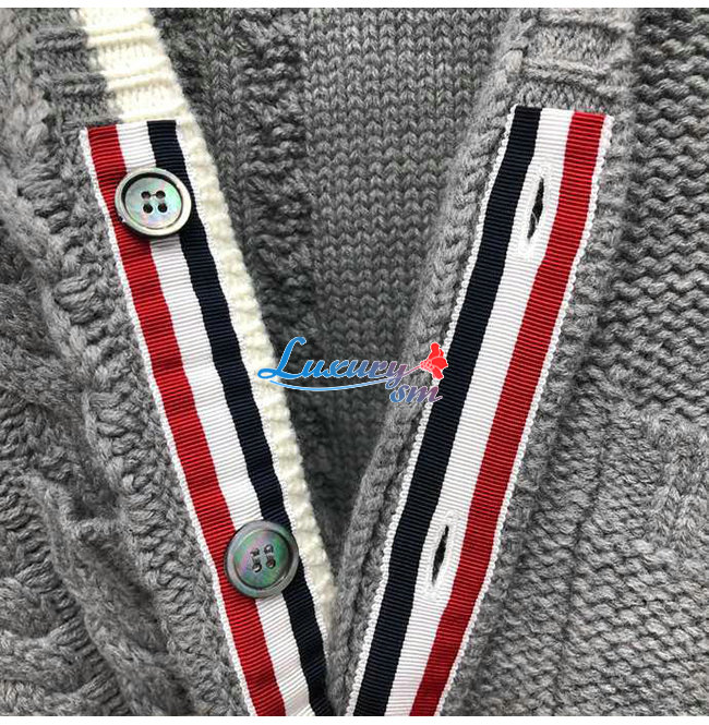 THOM BROWNE-112511 톰 브라운 그레이 니트 코튼 스트라이프 장식 가디건 남성용