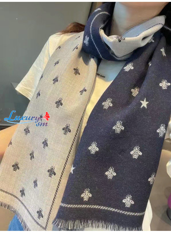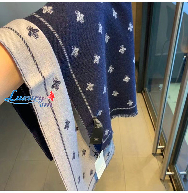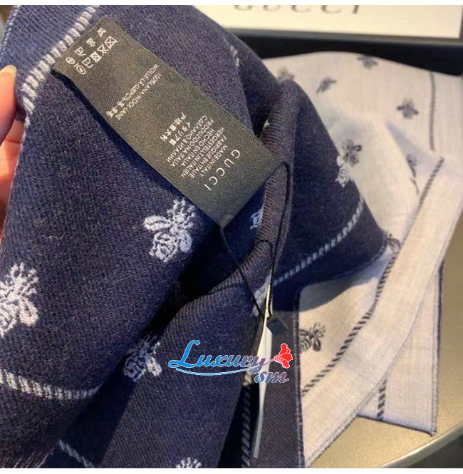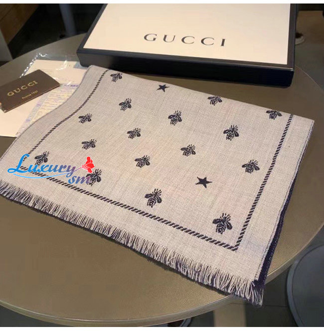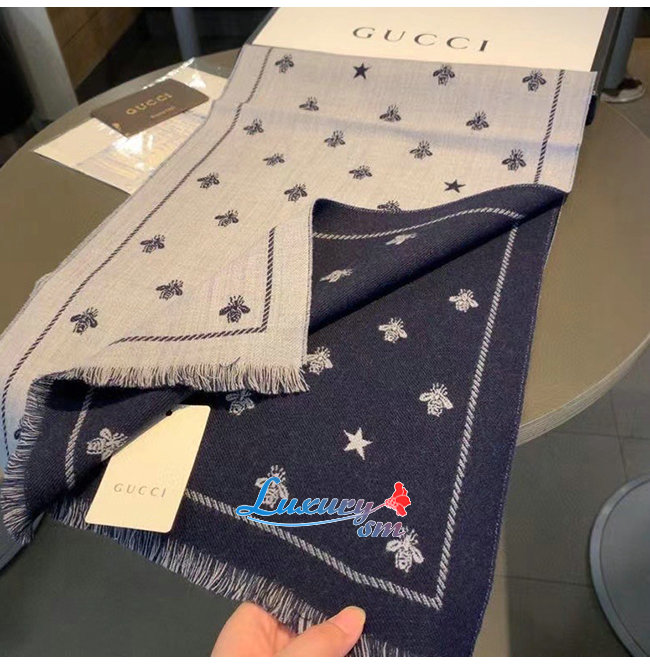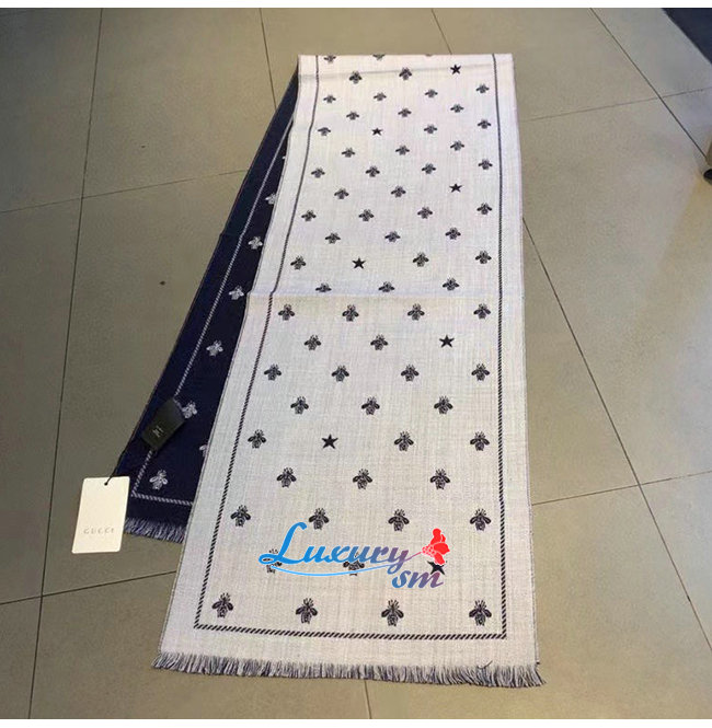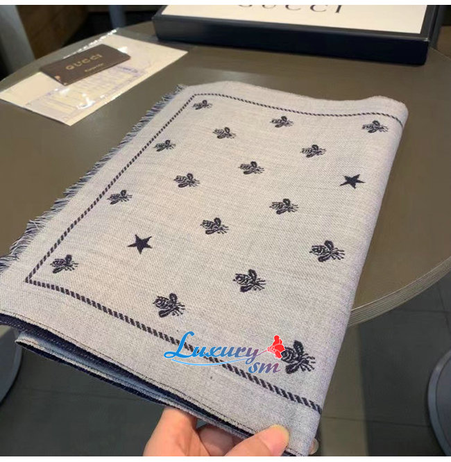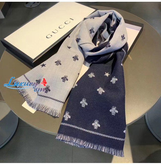 GUCCI-430583 1468 구찌 그레이/블루 벌 별 모양 디테일 울 스카프