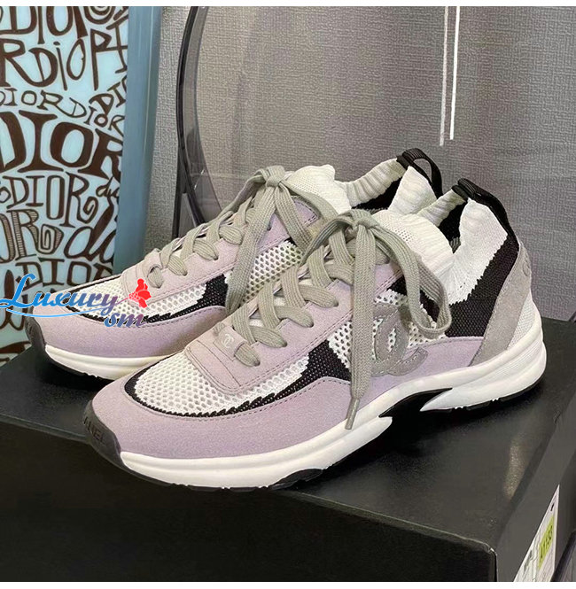 CHANEL-G38750 샤넬 퍼플 스웨이드 카프스킨 스니커즈 여성용