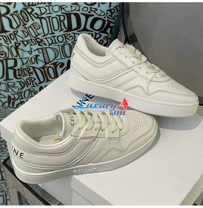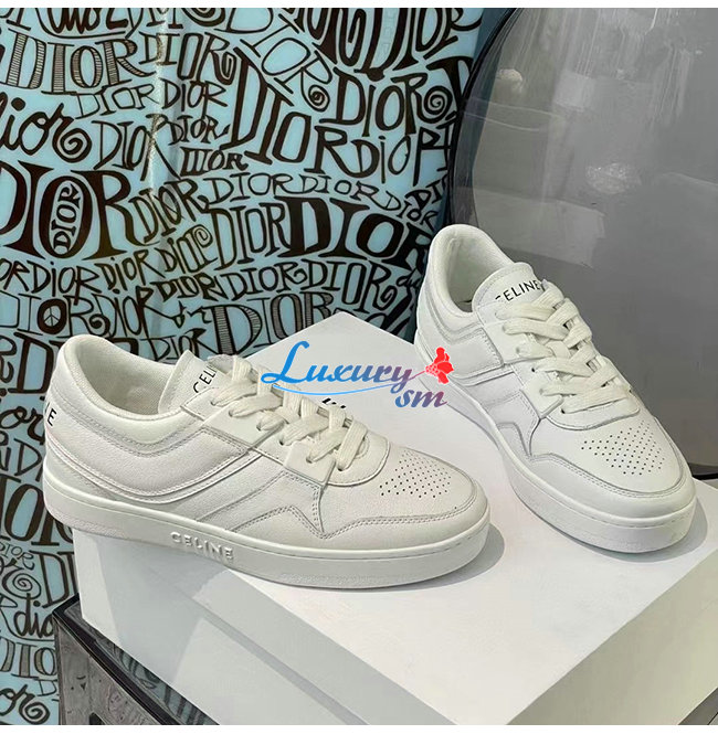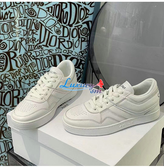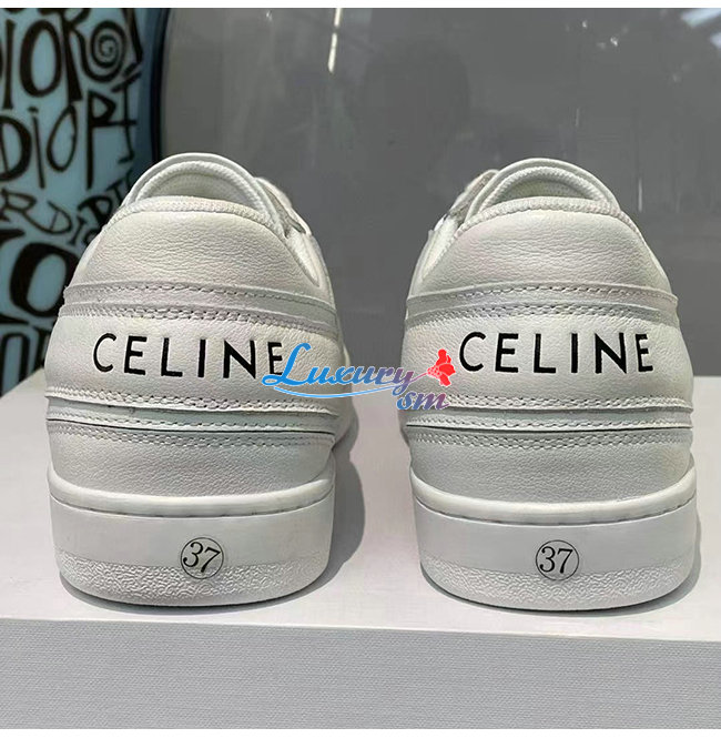 CELINE-345033 셀린느 화이트 카프스킨 레이스업 스니커즈 여성용