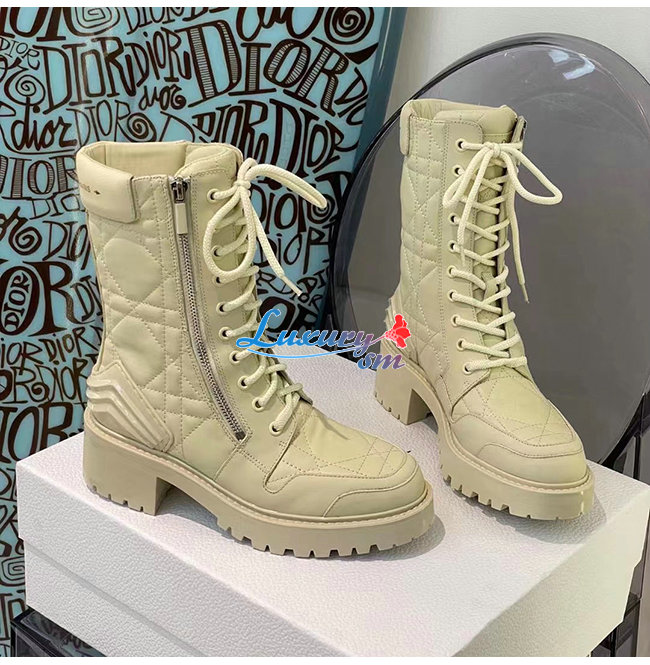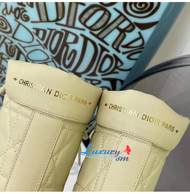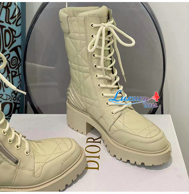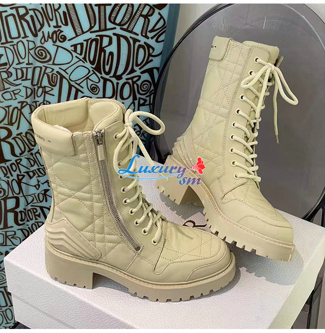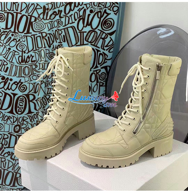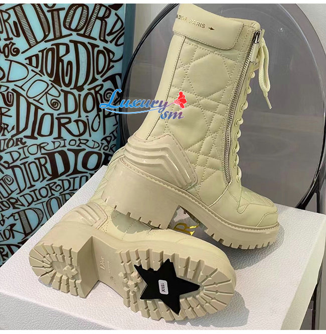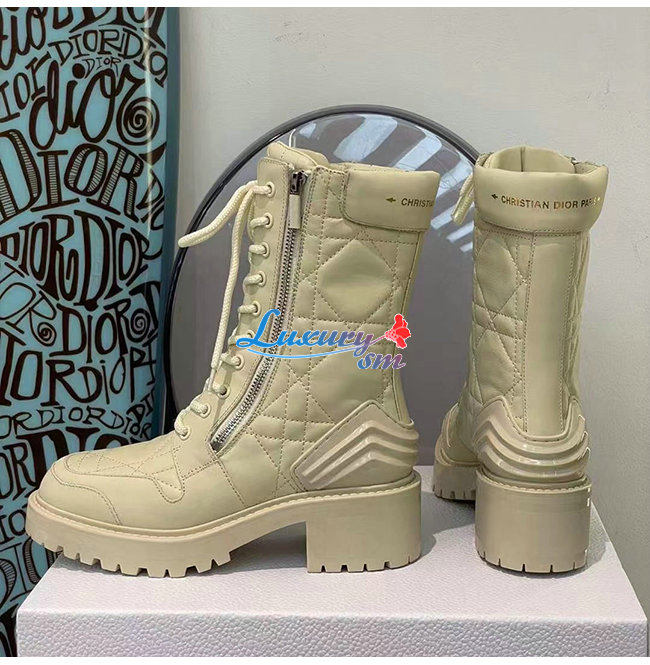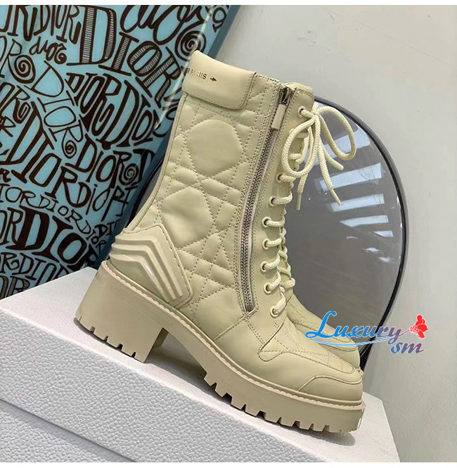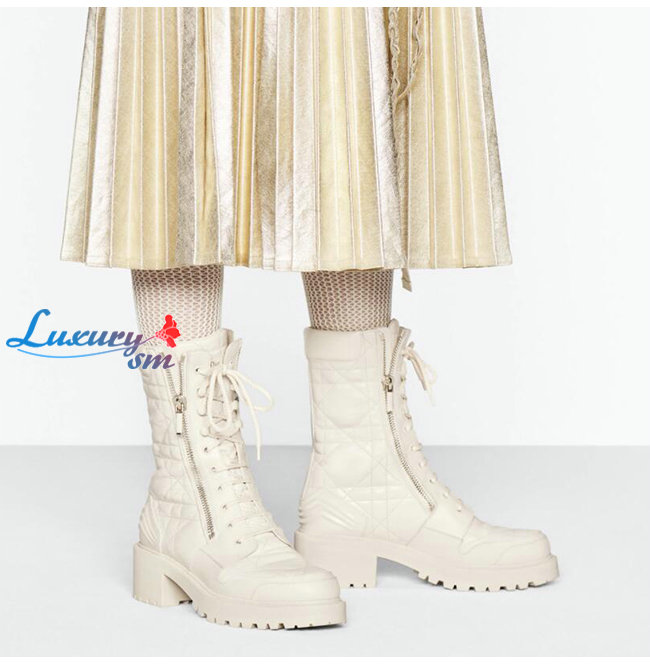 DIOR-KDI733 디올 아이보리 송아지 가죽 D-LEADER 앵클 부츠 여성용