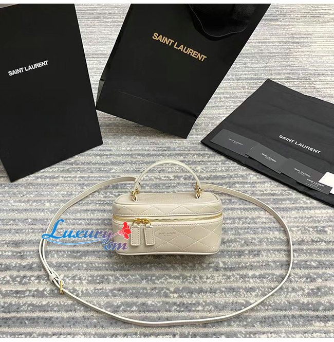 [스페셜오더]SAINT LAURENT-669560 생 로랑 화이트 퀼티드 램스킨 미니 생 로랑 베니티 케이스